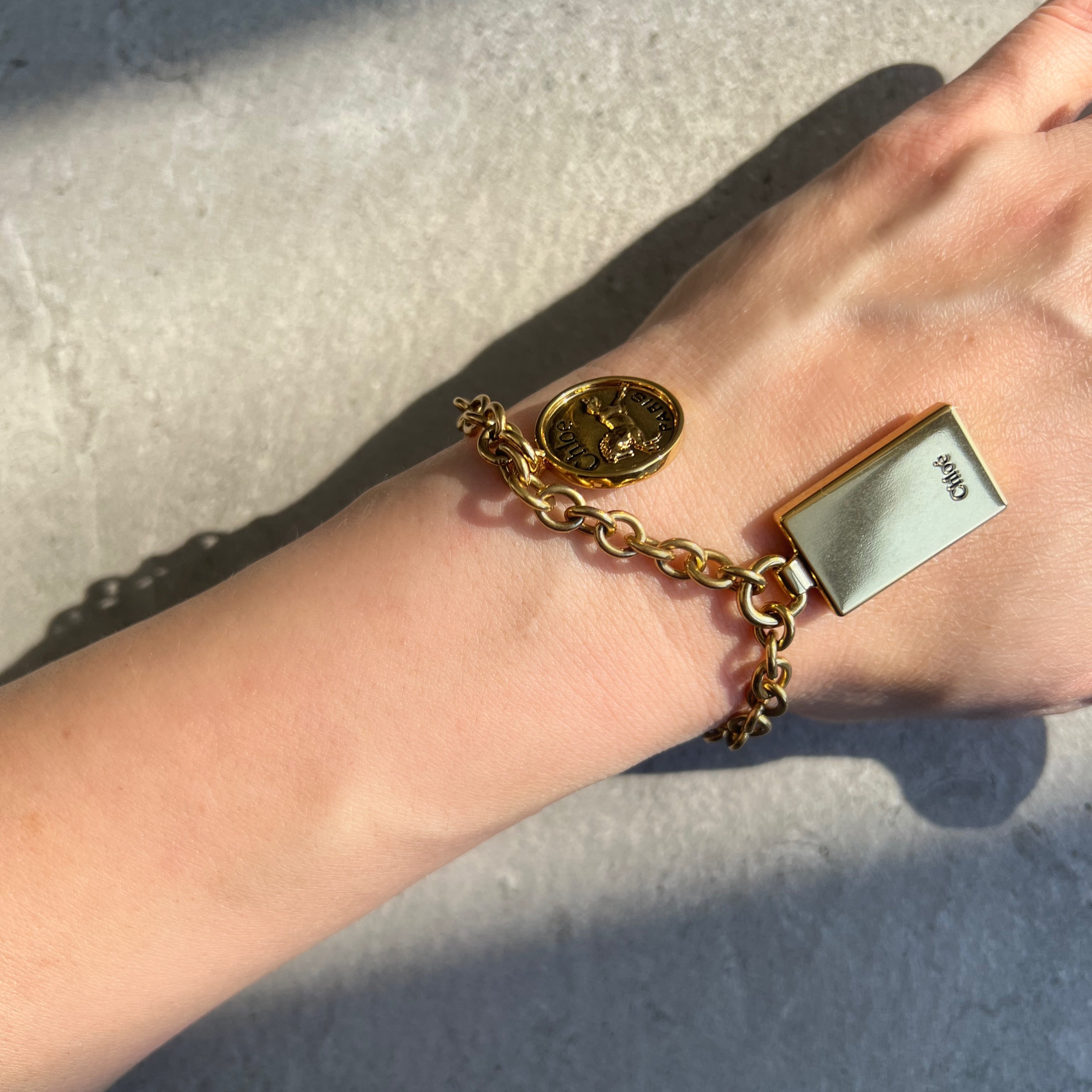 Crafted from shiny grained cowhide, the small Chloé Spin tote bag has a minimalist silhouette elevated with graphic lines. A dangling chain features the Maison's signature Chloé and Horse Medals.