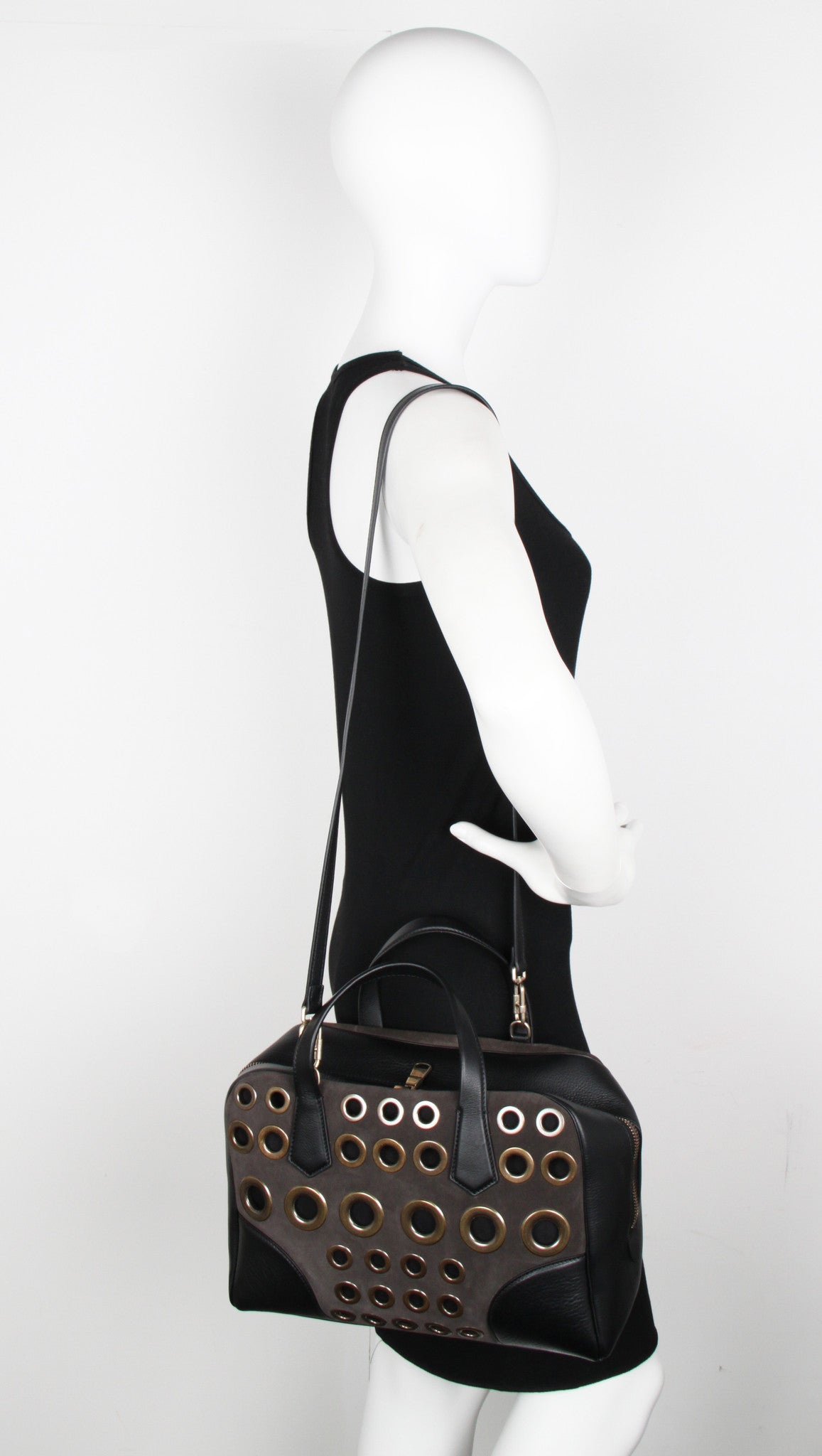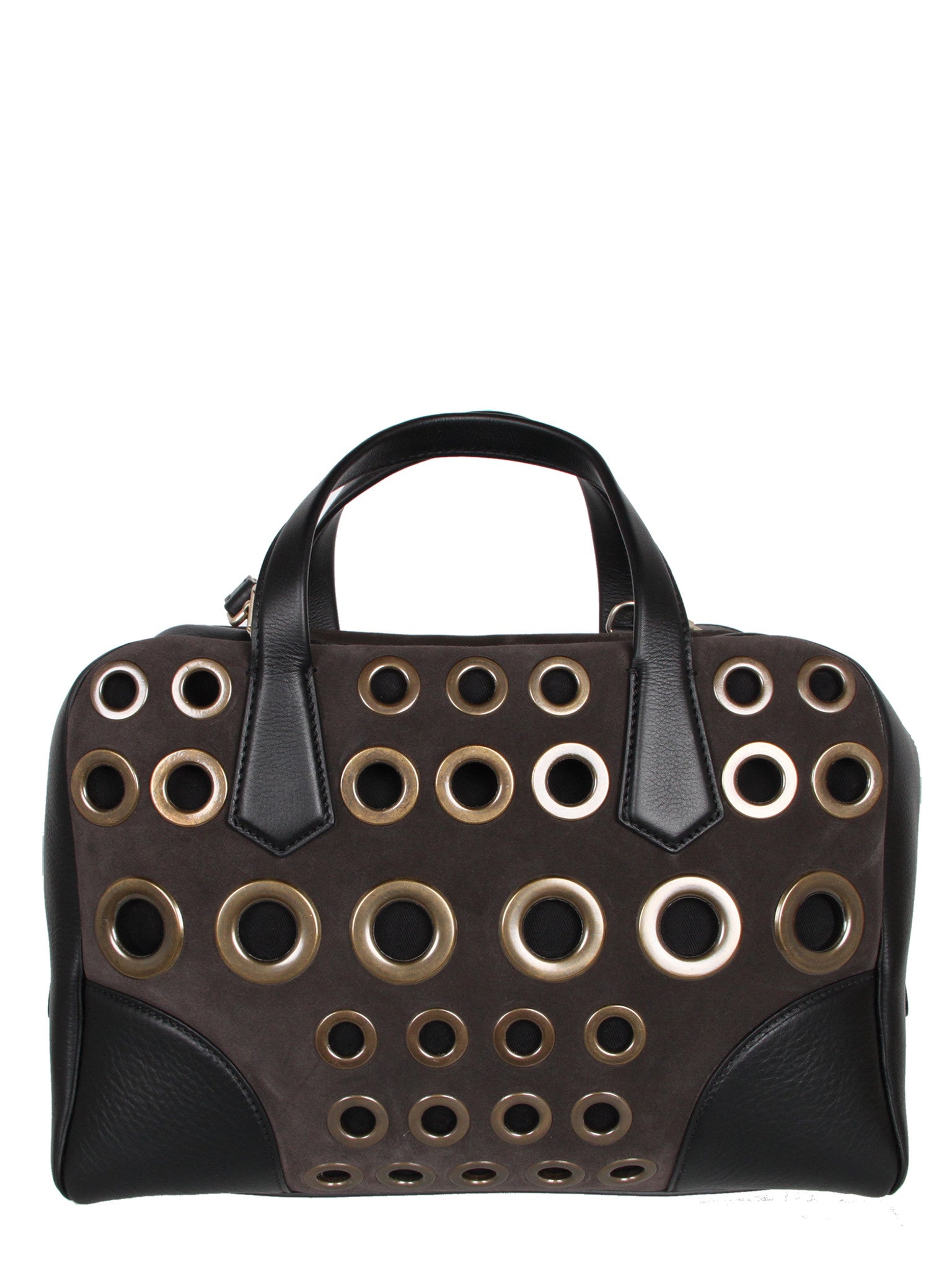 Le Coussin Boston Eyelet Bag, Black/Grey