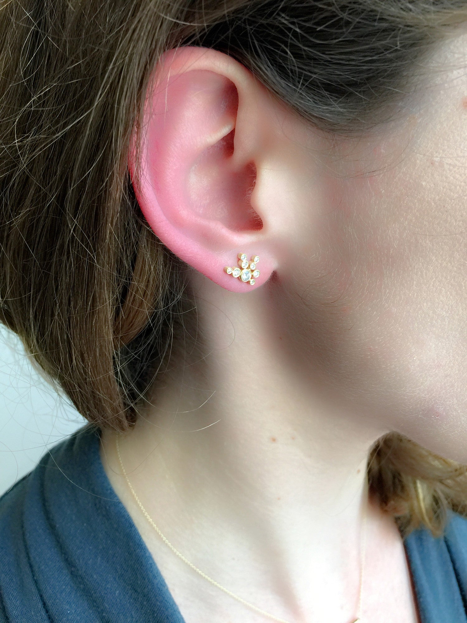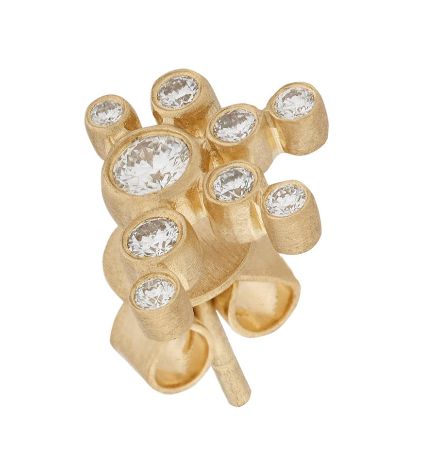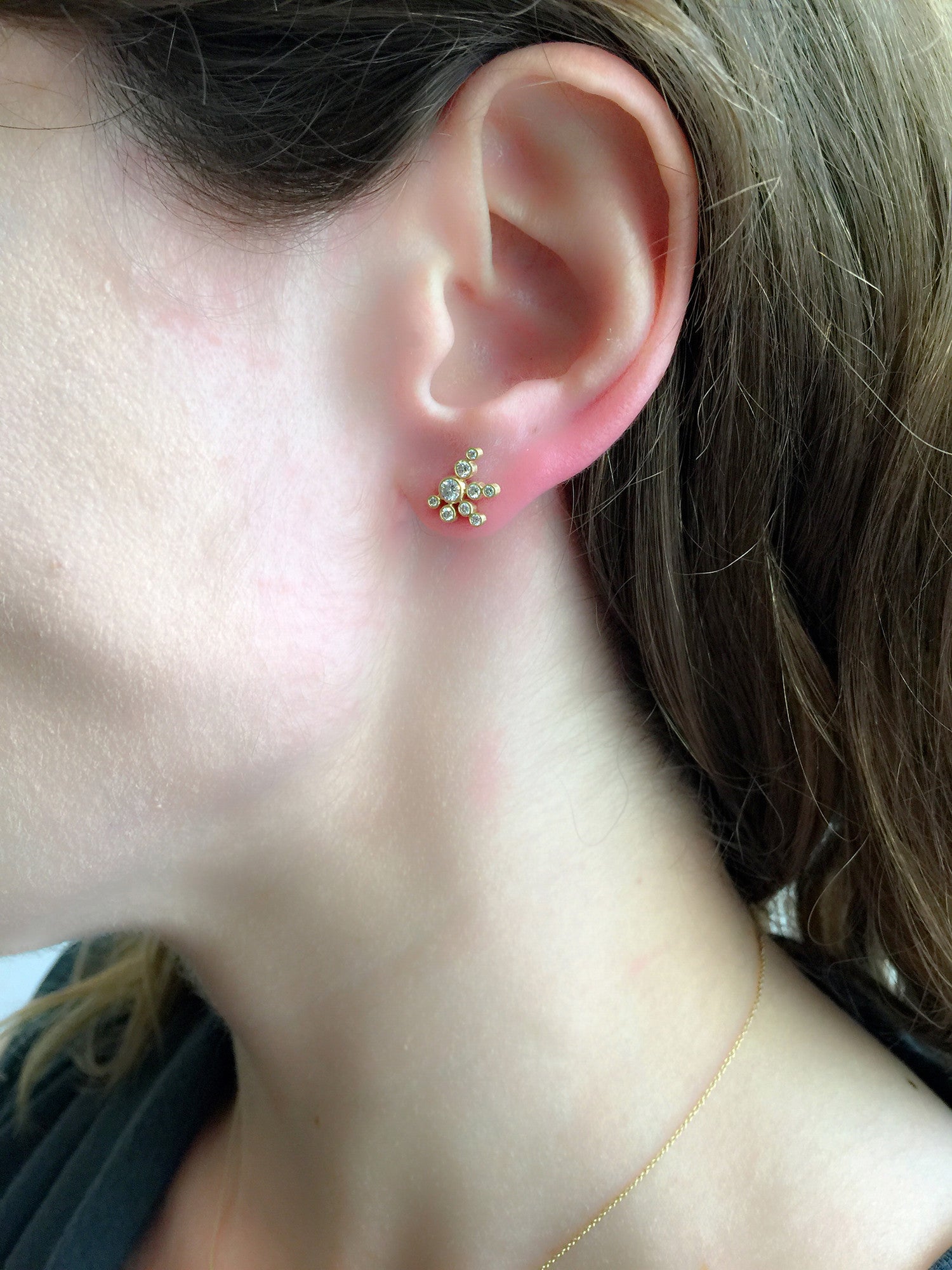 Nine white diamonds set in 18 kt. Yellow Gold - 0,23 ct. Top Wesselton VVS Diamonds. Hook back for pierced ears.