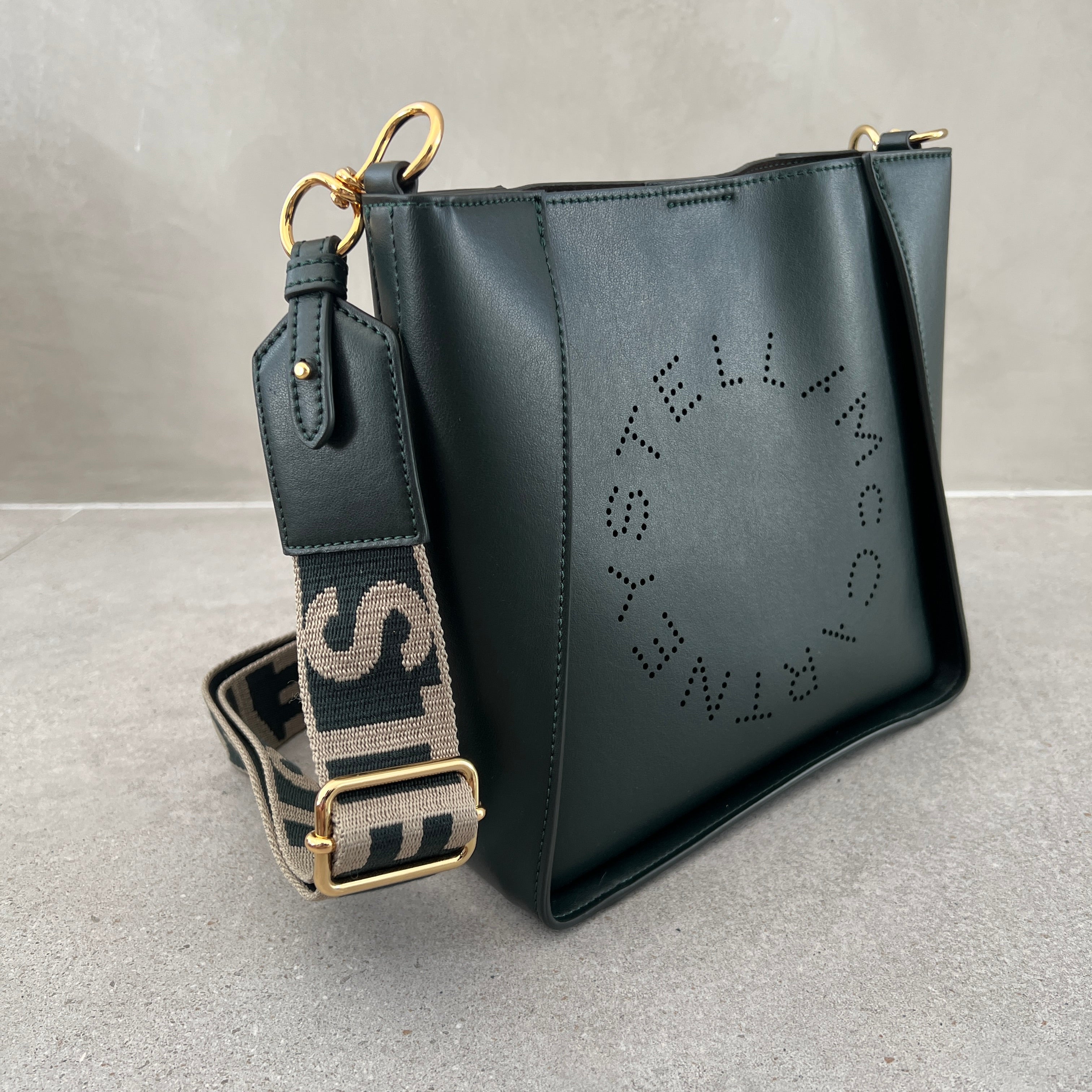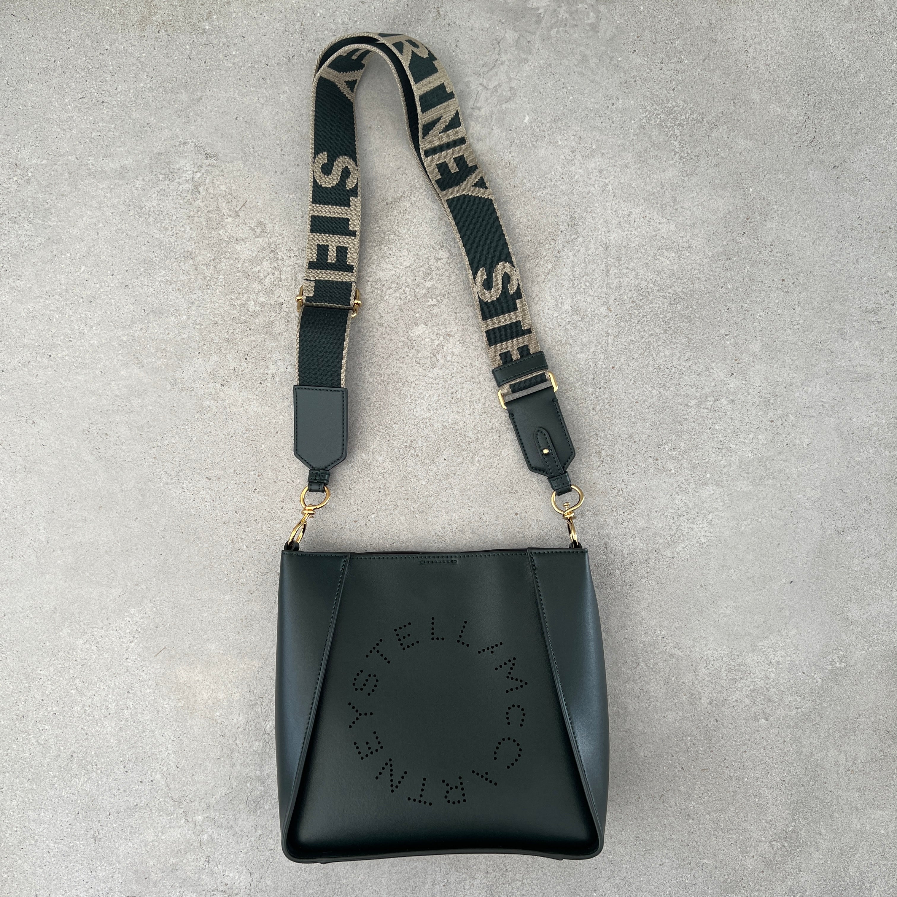 The original everyday companion, this vegan Stella Logo shoulder bag is defined by a perforated, circular Stella McCartney logo at the front and a logo-patterned webbing strap in post-consumer recycled materials. Sling it across to instantly elevate any look, stash your phone and keys away safely in the main compartment and use the slip pocket to stow away emergency top-up essentials – whether you’re on or off-duty.