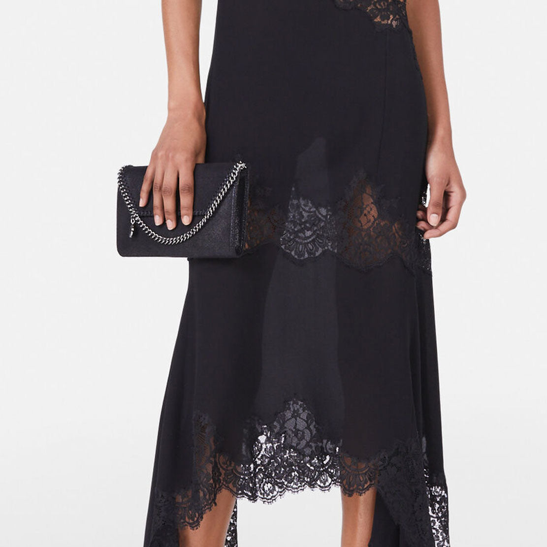 The bag is elevated with high-shine gold hardware, a long chain strap and a flap front for round-the-clock appeal. Framed with our iconic diamond-cut Falabella chain, the bag strikes a dichotomy of soft and tough lines.