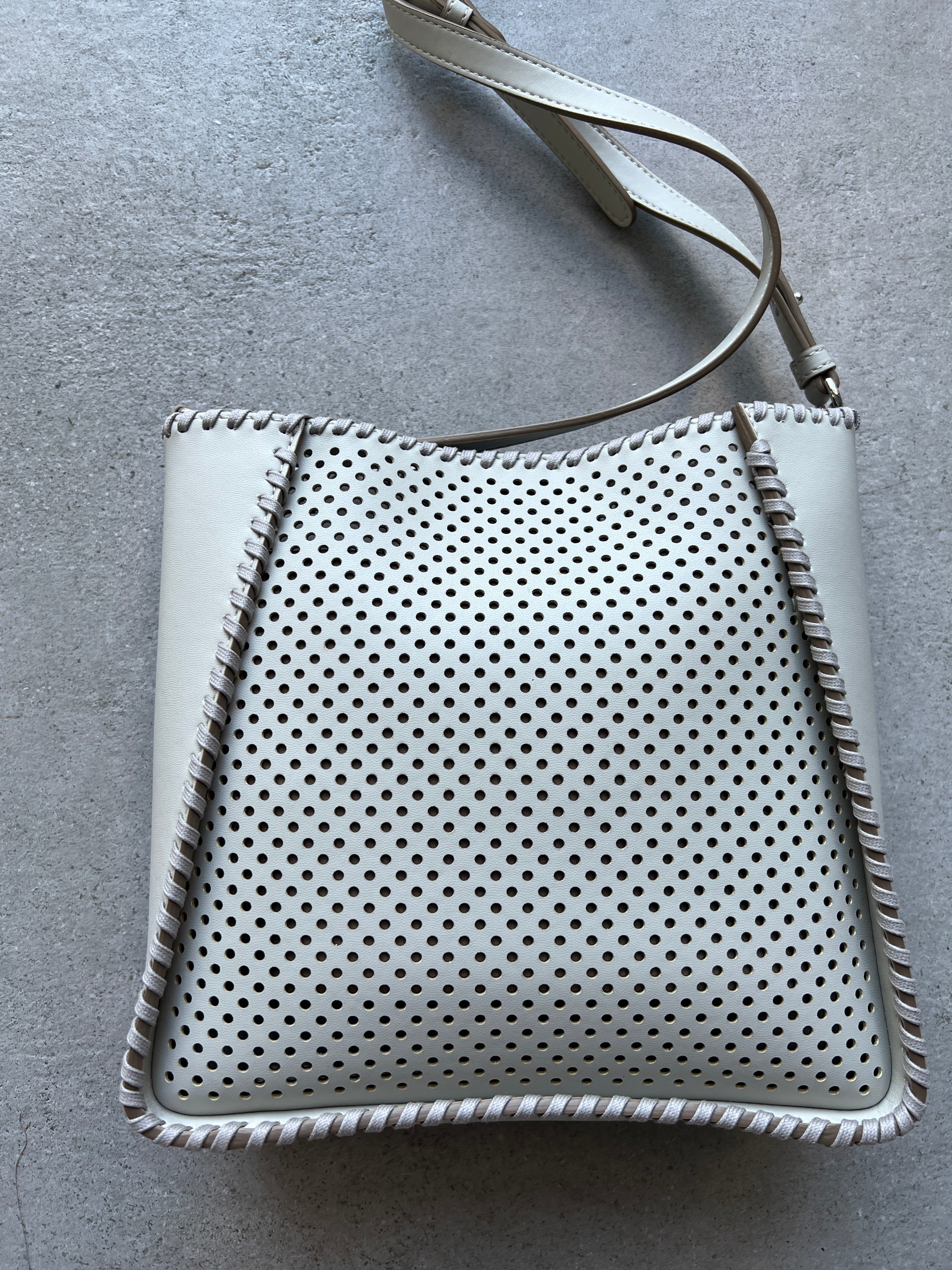 A perforated rendition of the classic logo hobo tote is your new day-to-day essential. It is crafted from luxurious vegan alternative to animal leather, with a butter-soft hand-feel, and features iconic circular Stella McCartney logo on the front.