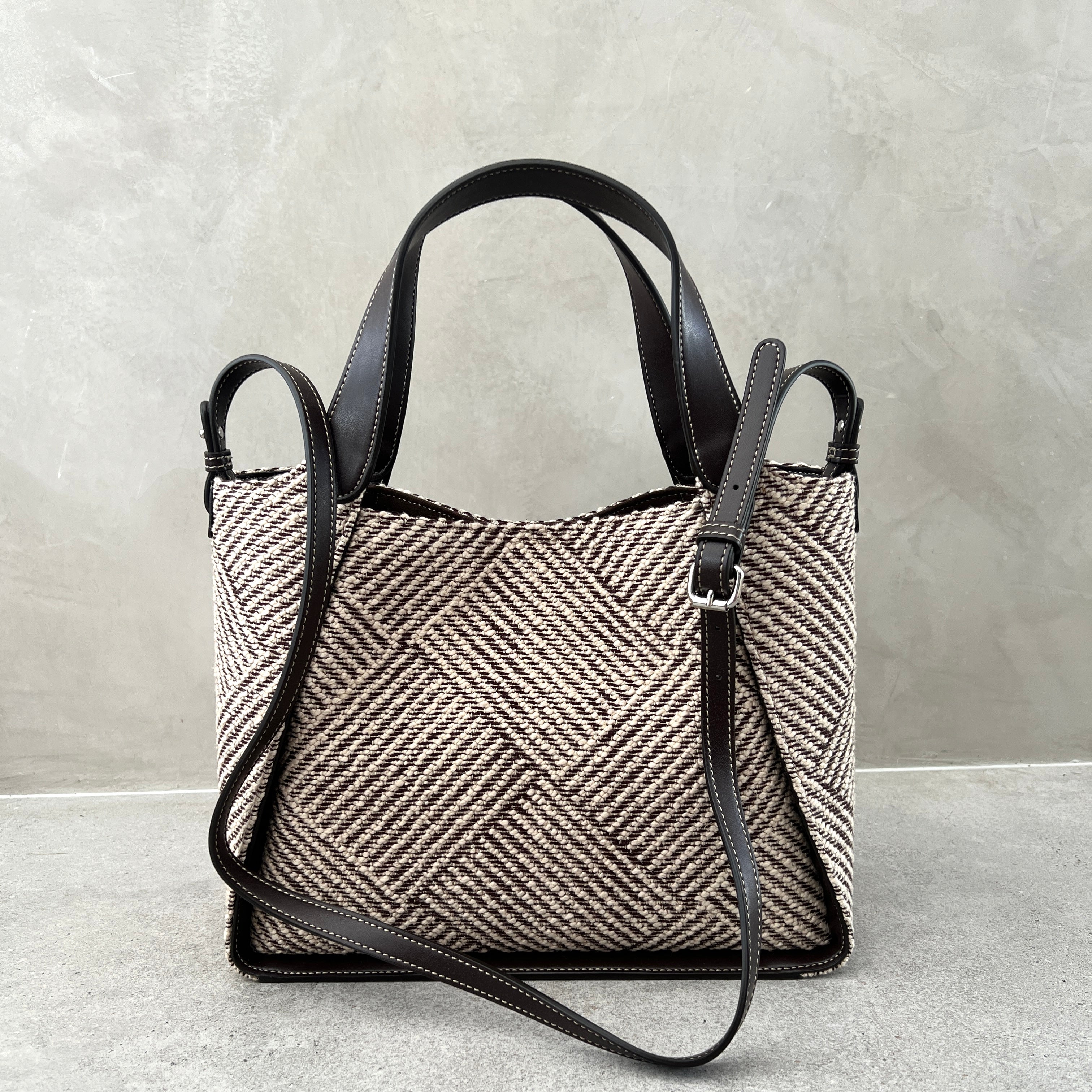 Stella Logo Tote C/B Embroidered Jacquard, Choc/Cream