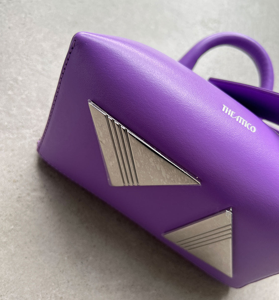 ''Friday'' mini handbag in mauve leather with top handle and removable shoulder strap that doubles as a belt.