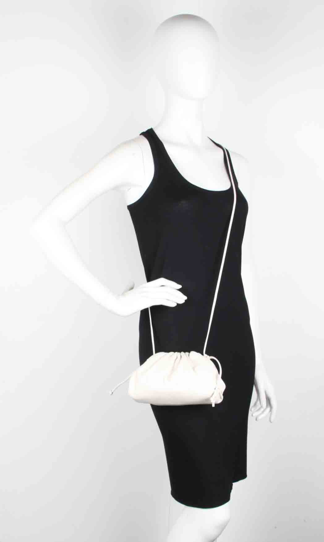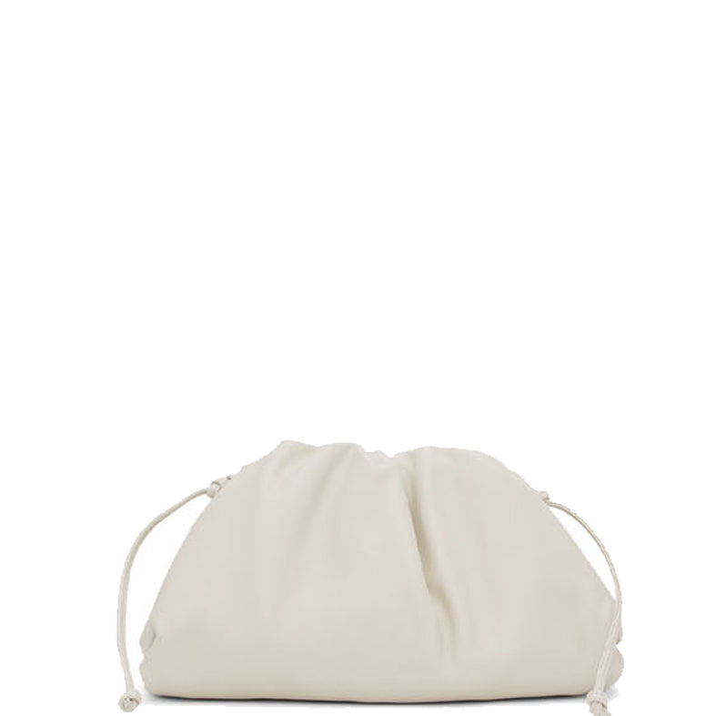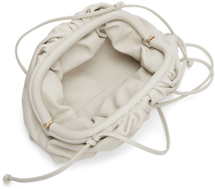 Soft voluminous clutch in exceptionally supple calfskin. Magnetic frame covered in folds of shiny calfskin. Single compartment lined in shiny calfskin. Slim leather shoulder strap. Smaller style of The Pouch, a brand icon that reflects Bottega Veneta’s heritage with a modern attitude