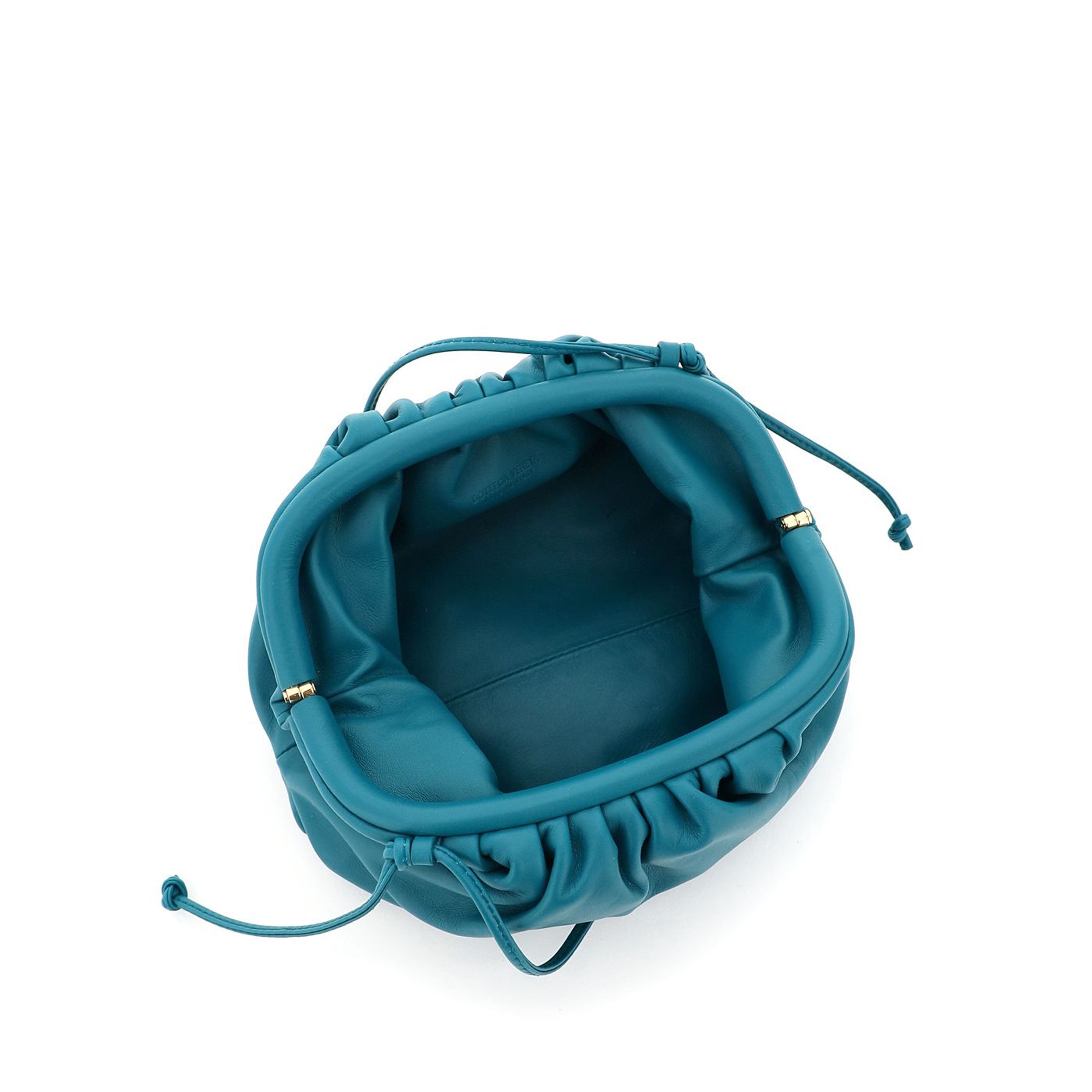 Soft voluminous clutch in exceptionally supple calfskin. Magnetic frame covered in folds of shiny calfskin. Single compartment lined in shiny calfskin. Slim leather shoulder strap. Smaller style of The Pouch, a brand icon that reflects Bottega Veneta’s heritage with a modern attitude