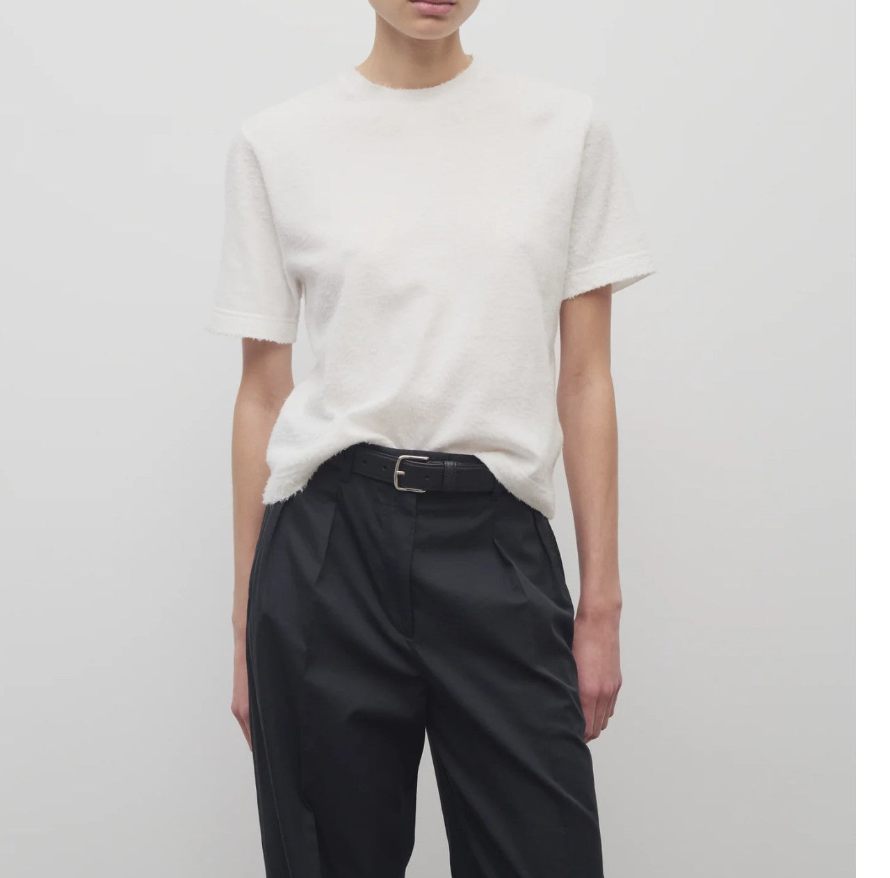 Classic belt in sleek calfskin leather with metal buckle and fixed loop.