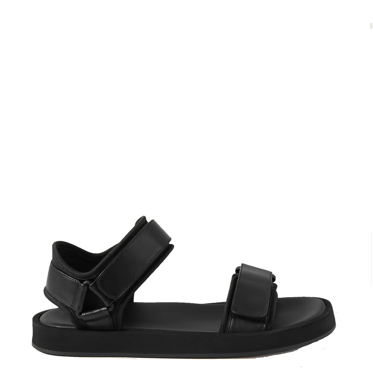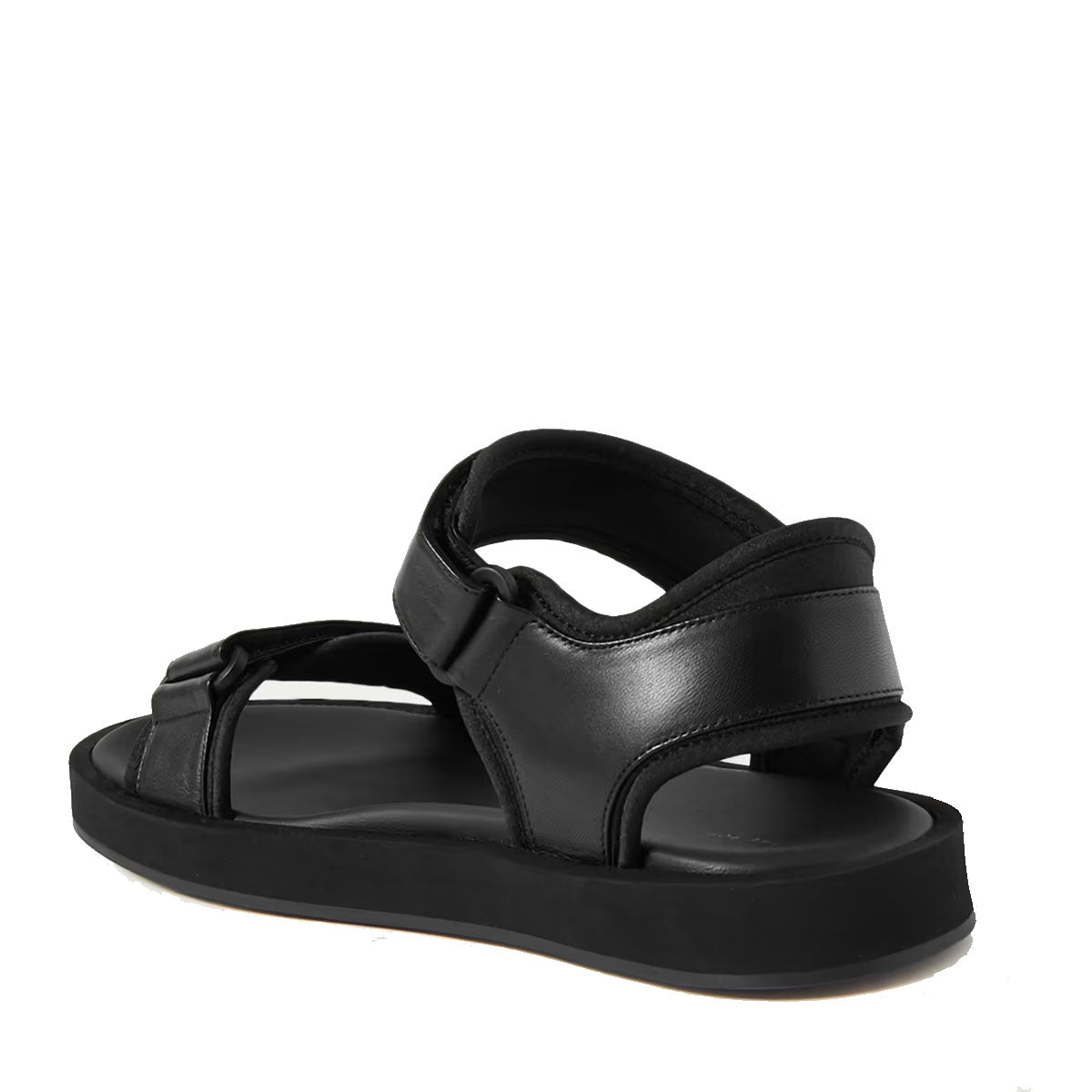 Sport-inspired sandal with neoprene lined smooth nappa leather straps, molded leather footbed and foam midsole for extra comfort. Finished with an adjustable velcro strap at vamp and ankle.
