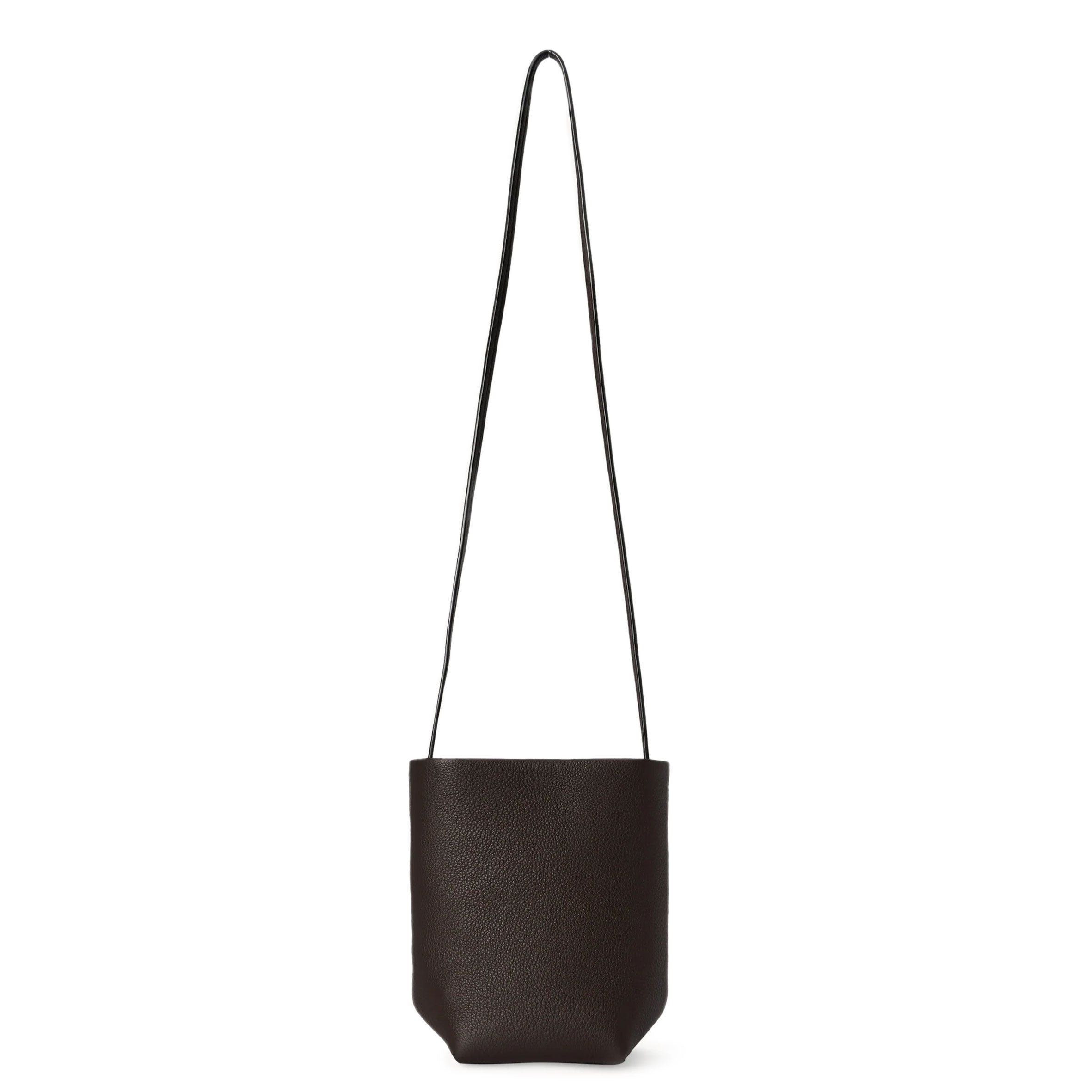 Crossbody tote bag in textured calfskin leather with adjustable shoulder strap and folded base. Minimally finished, the natural grain surface is left intact, giving the leather a supple hand and refined texture that develops character over time.