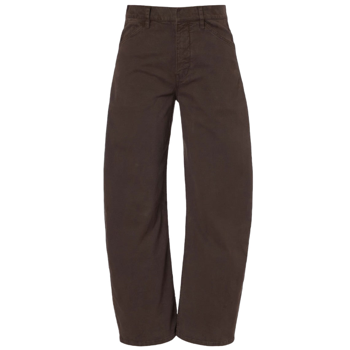 Mid-rise relaxed barrel leg pant in Italian brushed stretch twill cotton. Slant pockets. Back patch pockets. Coin pocket. Hidden hook-and-bar closure. Zip fly. Belt loops.