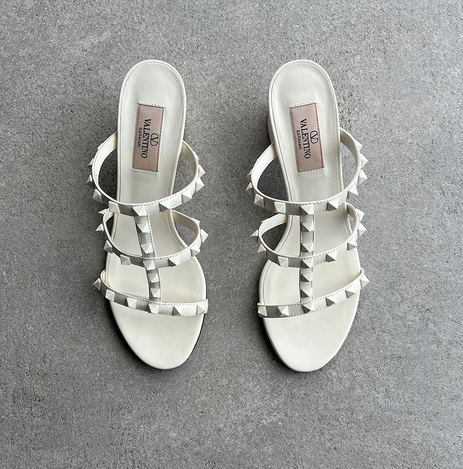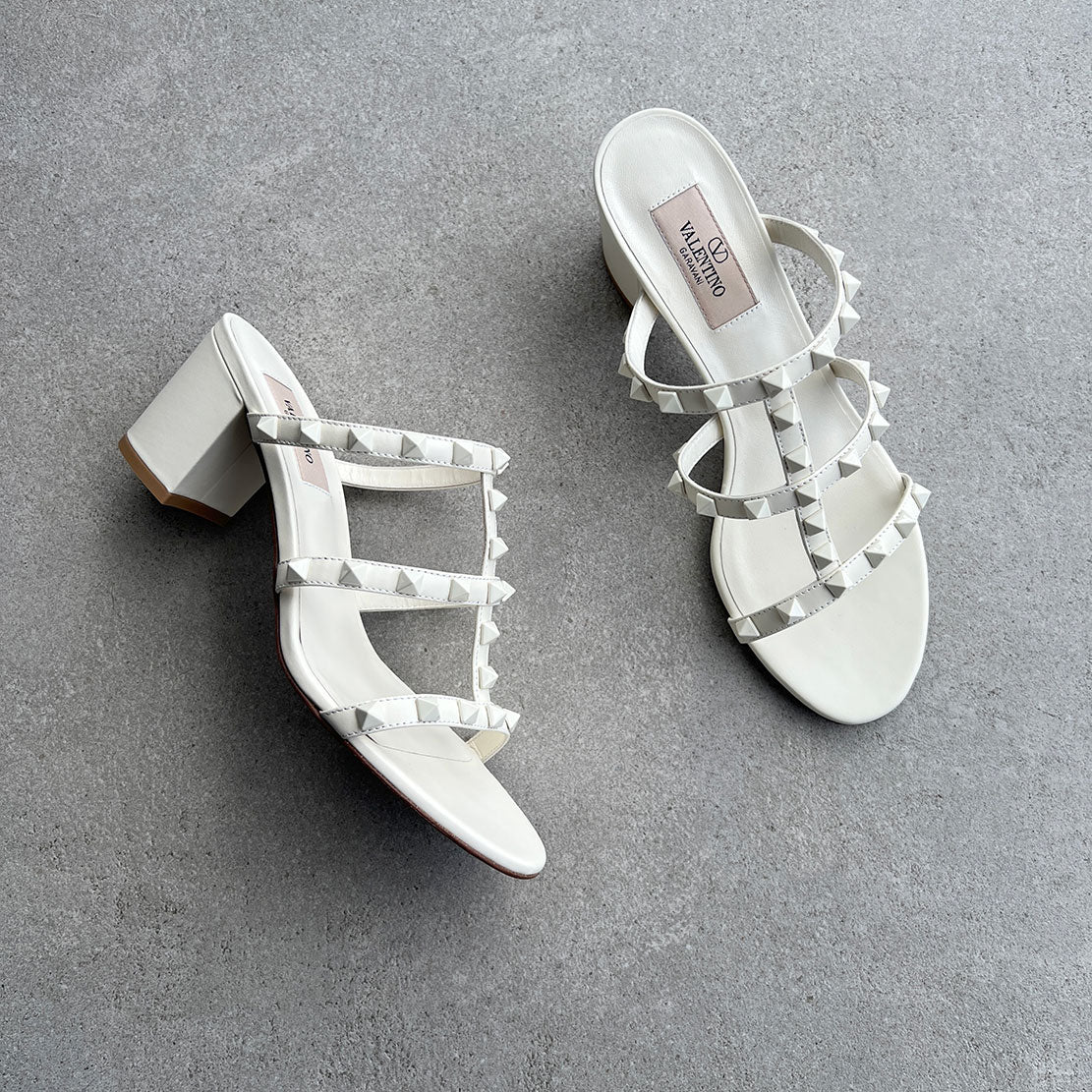 Valentino Garavani Rockstud sandal in ivory nappa leather with ivory tonal studs. Featuring tone-on-tone straps and comfortable 60 mm heel height.