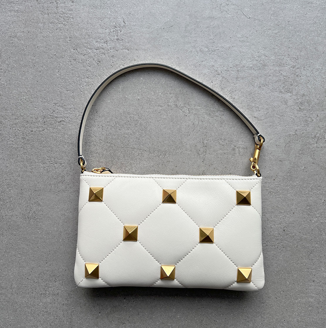 Roman Stud Wristlet / Shoulder Pouch, Ivory