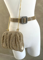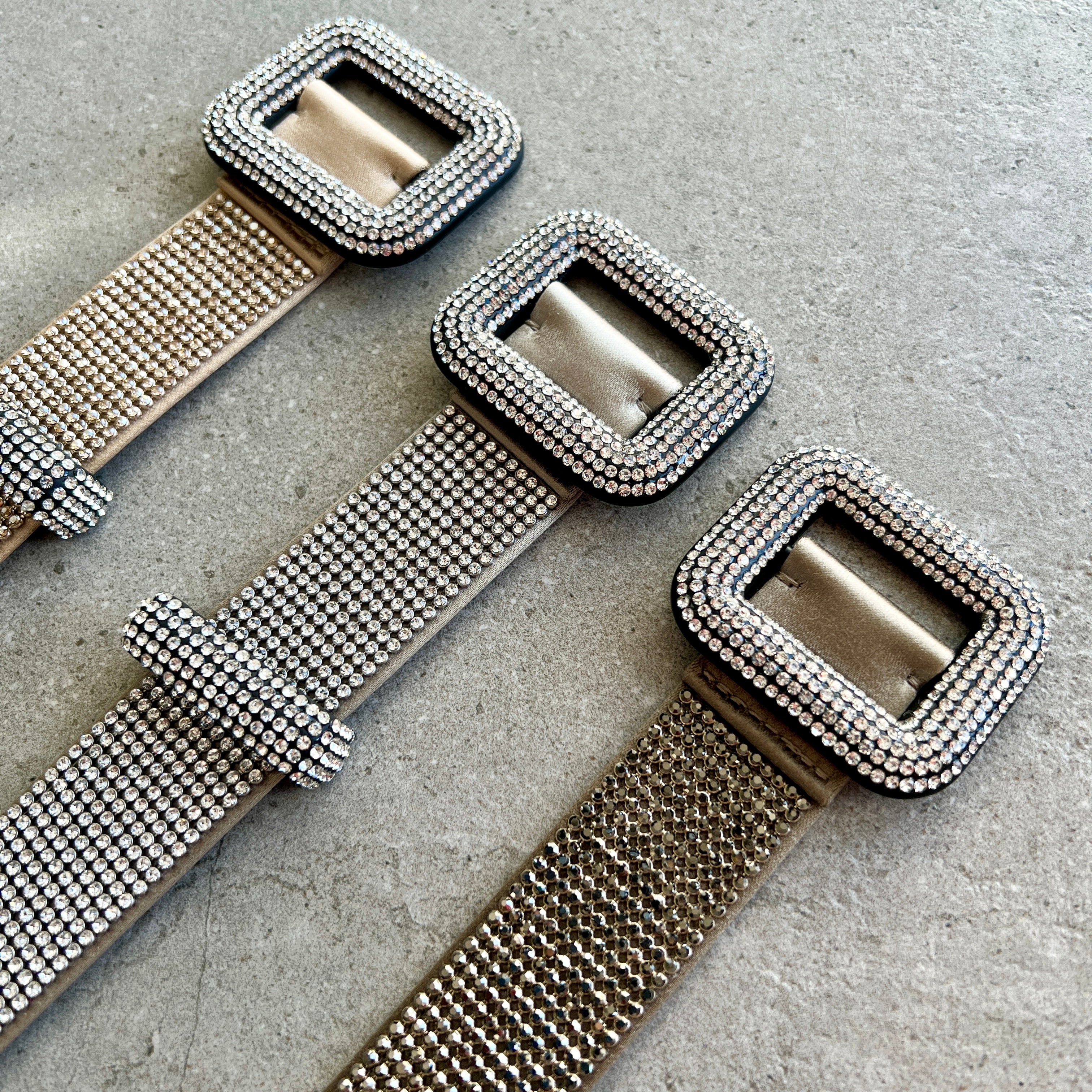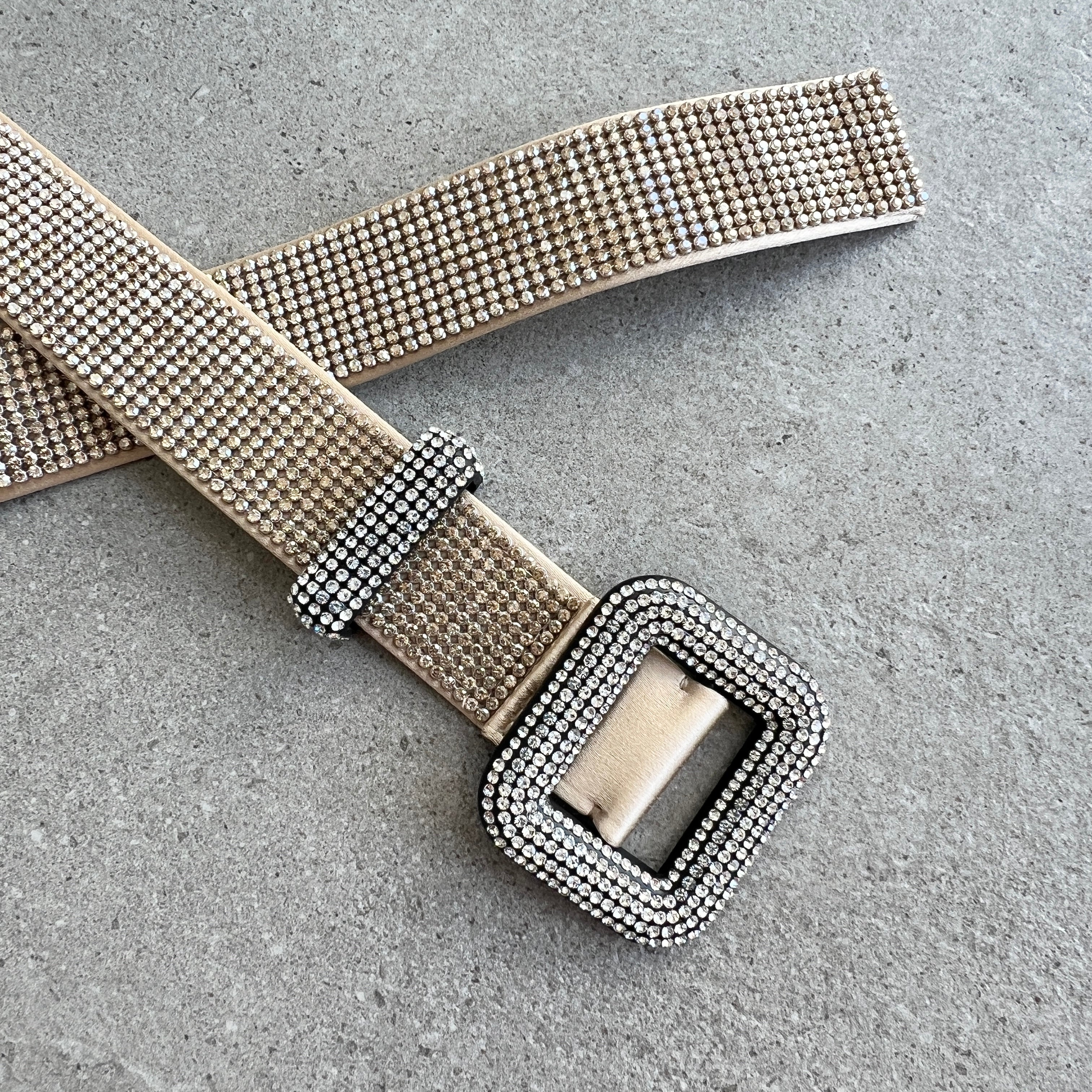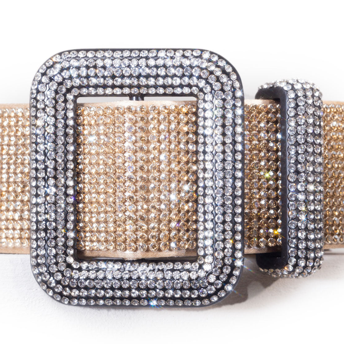 Created by the skilled hands of the artisians of Caprarola covering a silk belt with a glittering of metallic mesh of crystals.