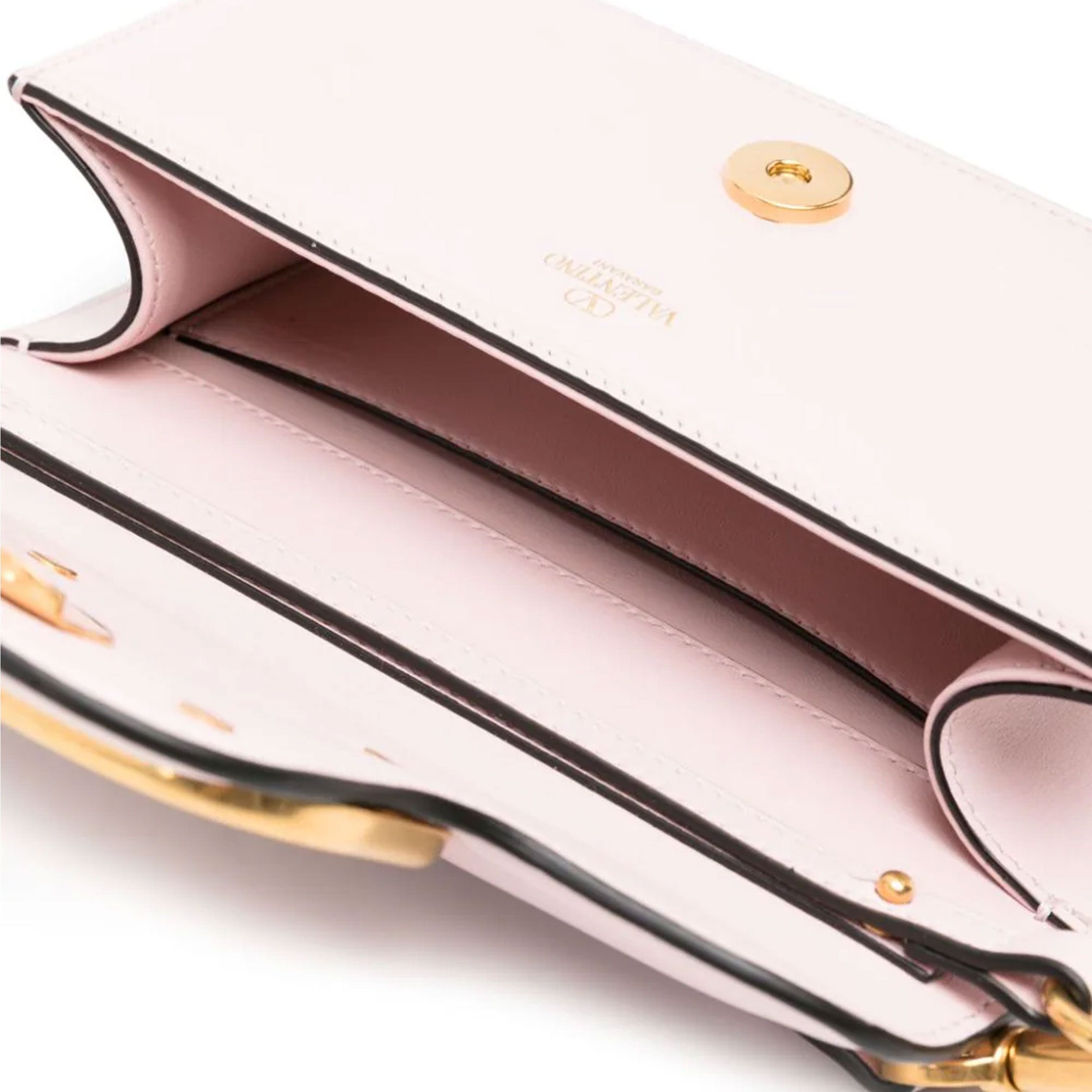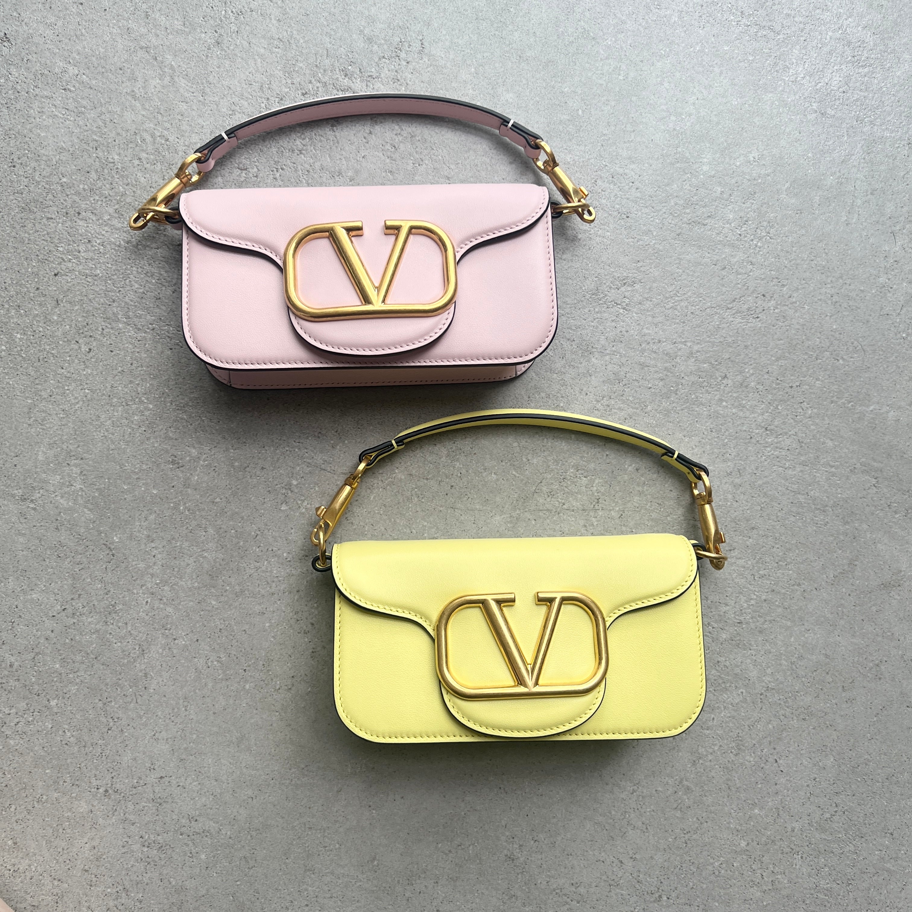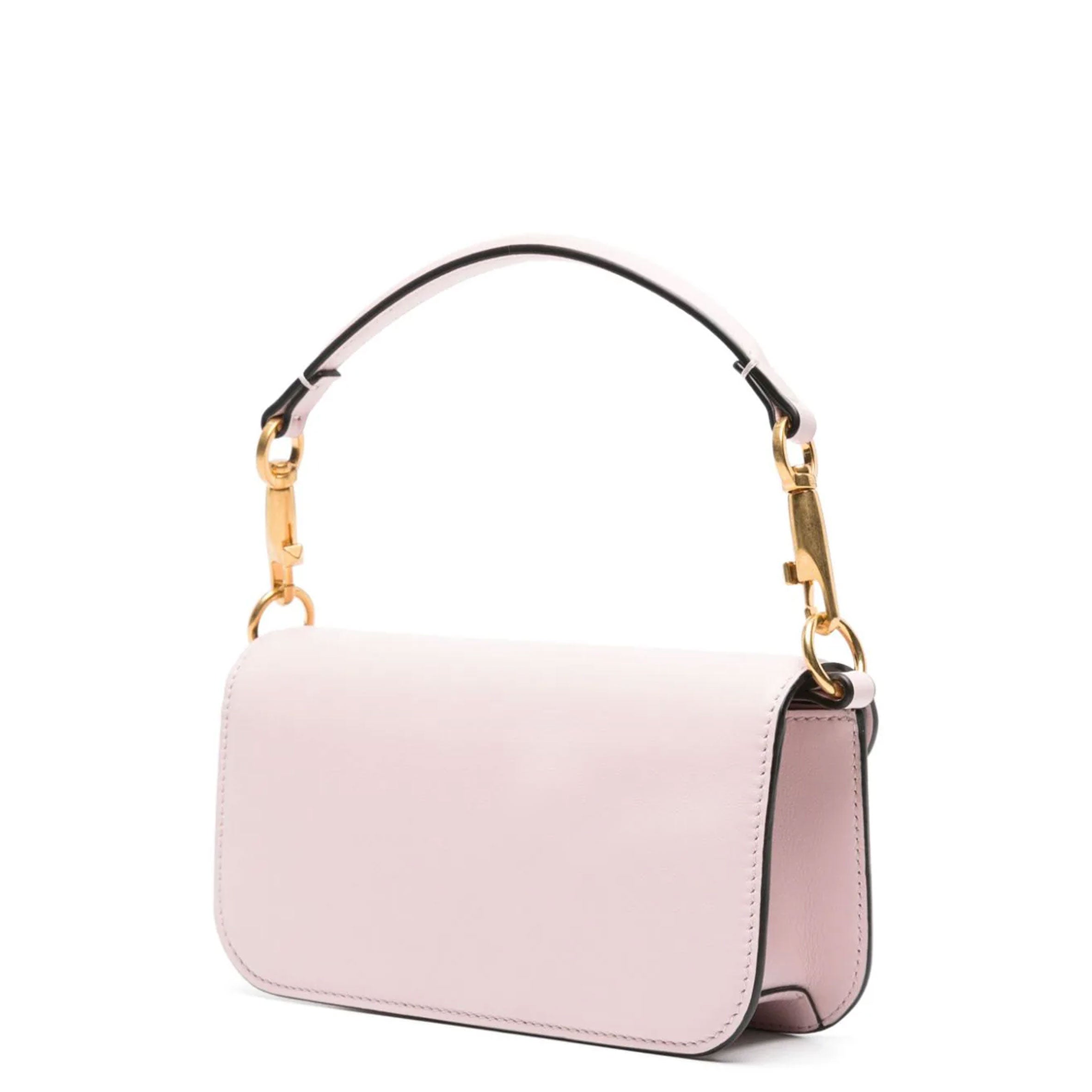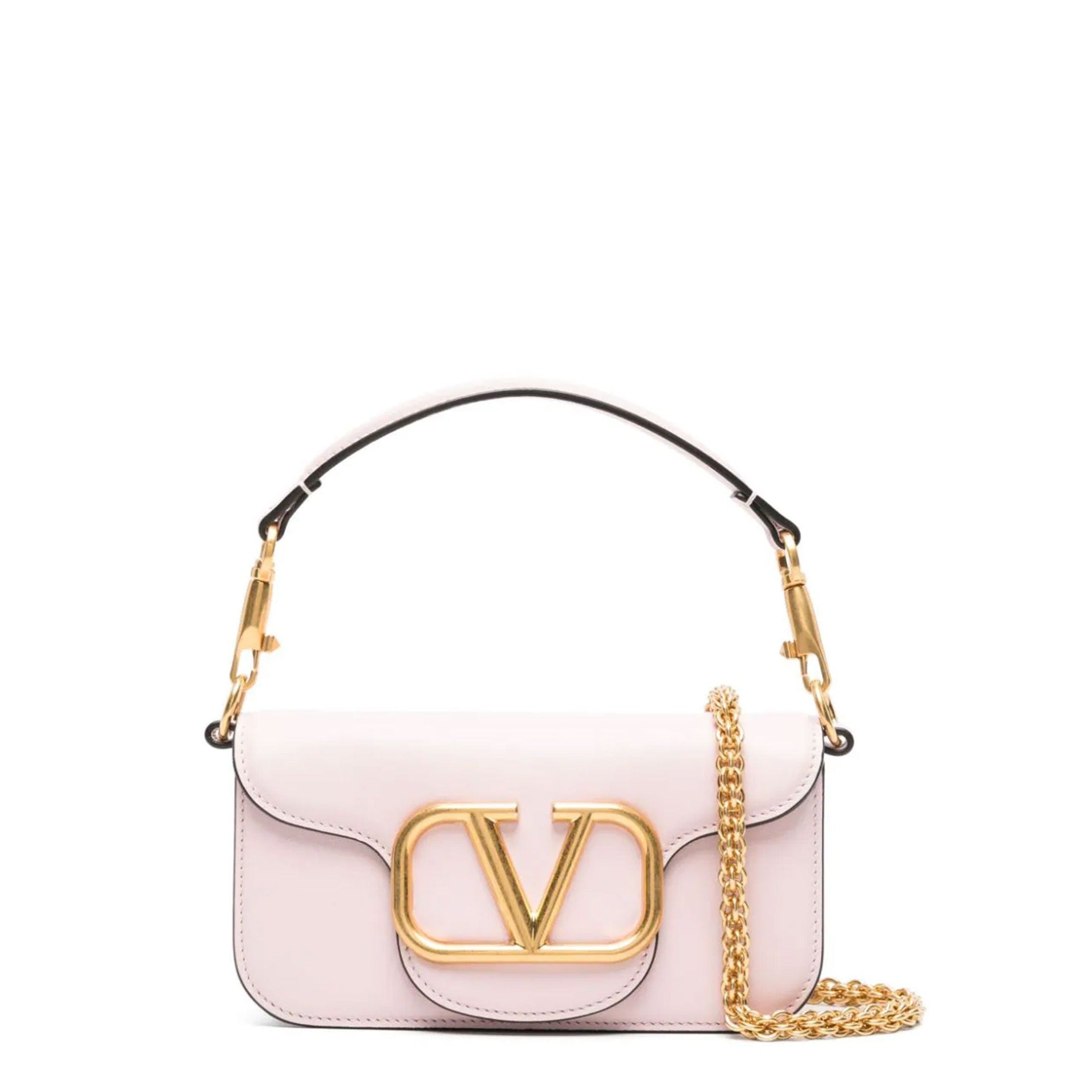 Valentino Garavani Loco women's small shoulder bag in calfskin leather with VLogo Signature metallic element. Equipped with a detachable sliding chain strap and a removable handle, this accessory can be worn as a crossbody/shoulder bag or carried as a handbag.