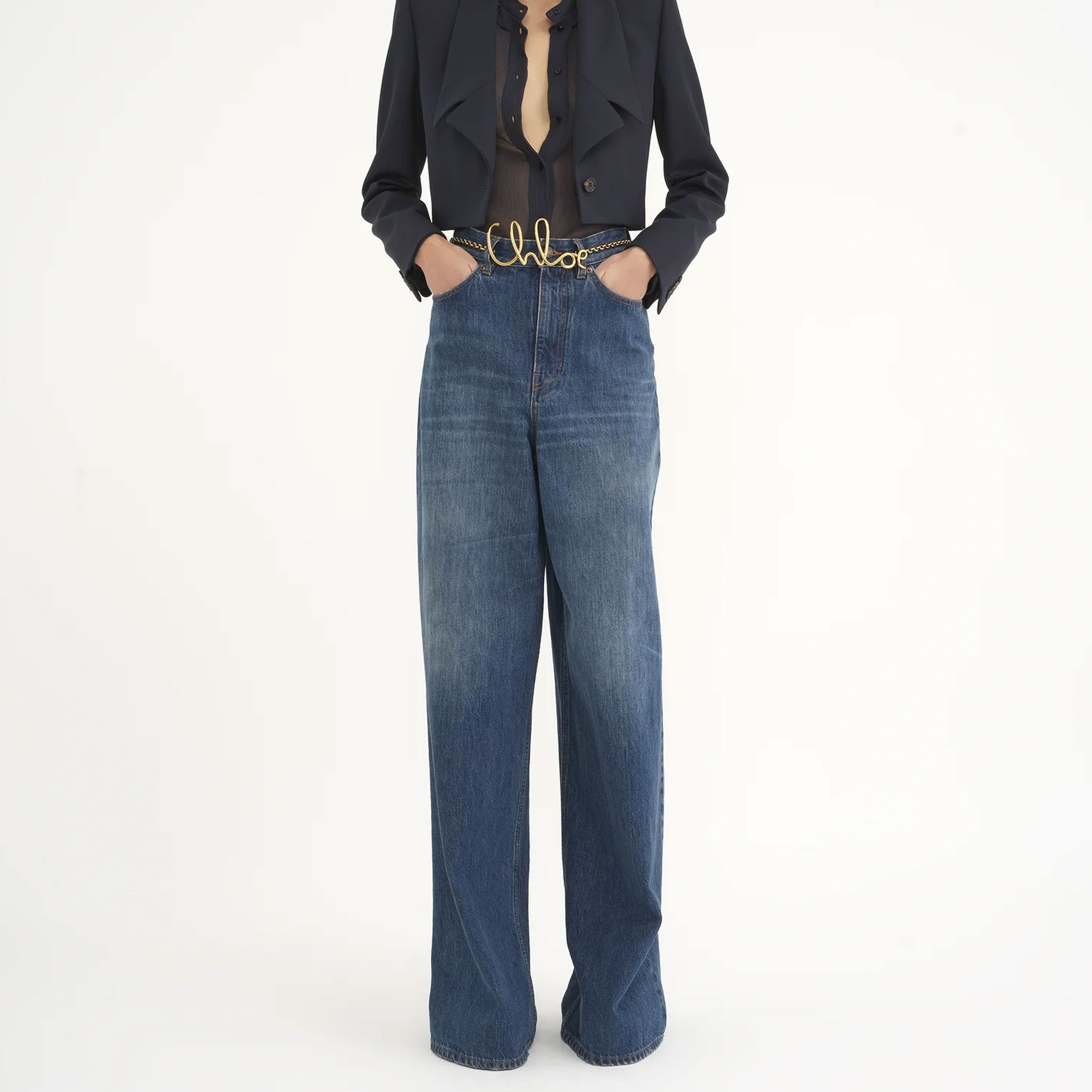 - Front zipper & Chloé Jeans Paris-engraved button fastening