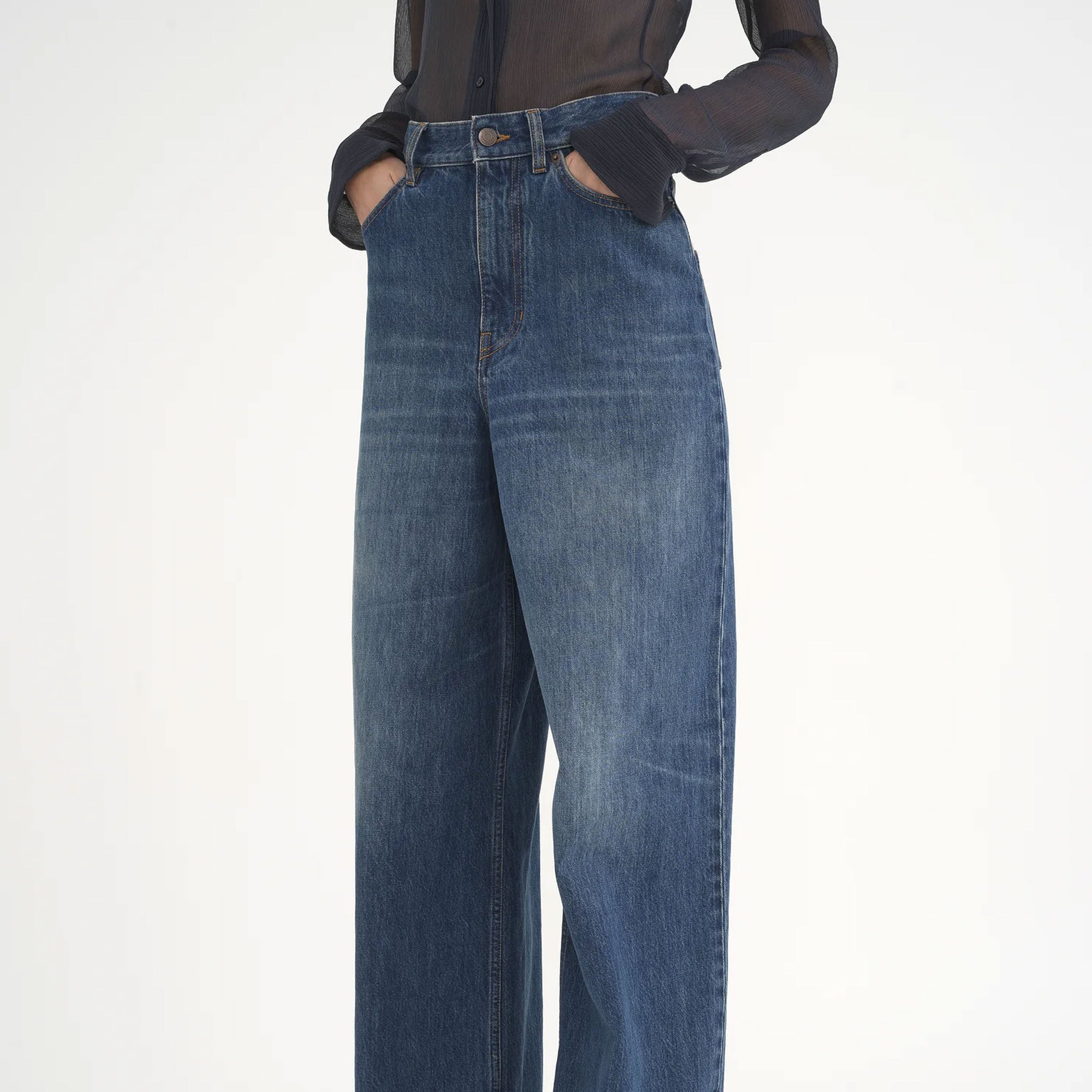 Wide-leg palazzo jeans in soft organic cotton denim with a vintage wash.