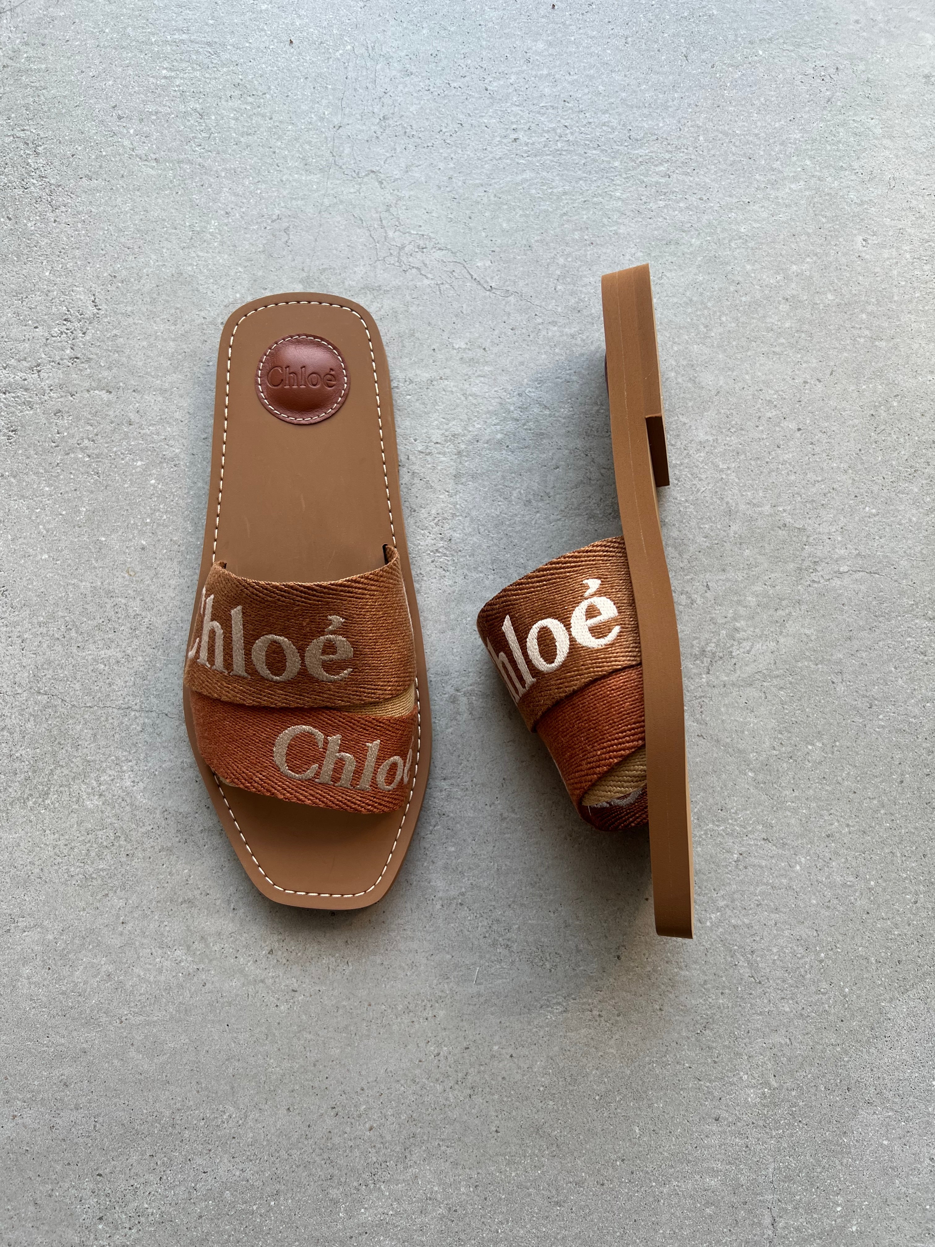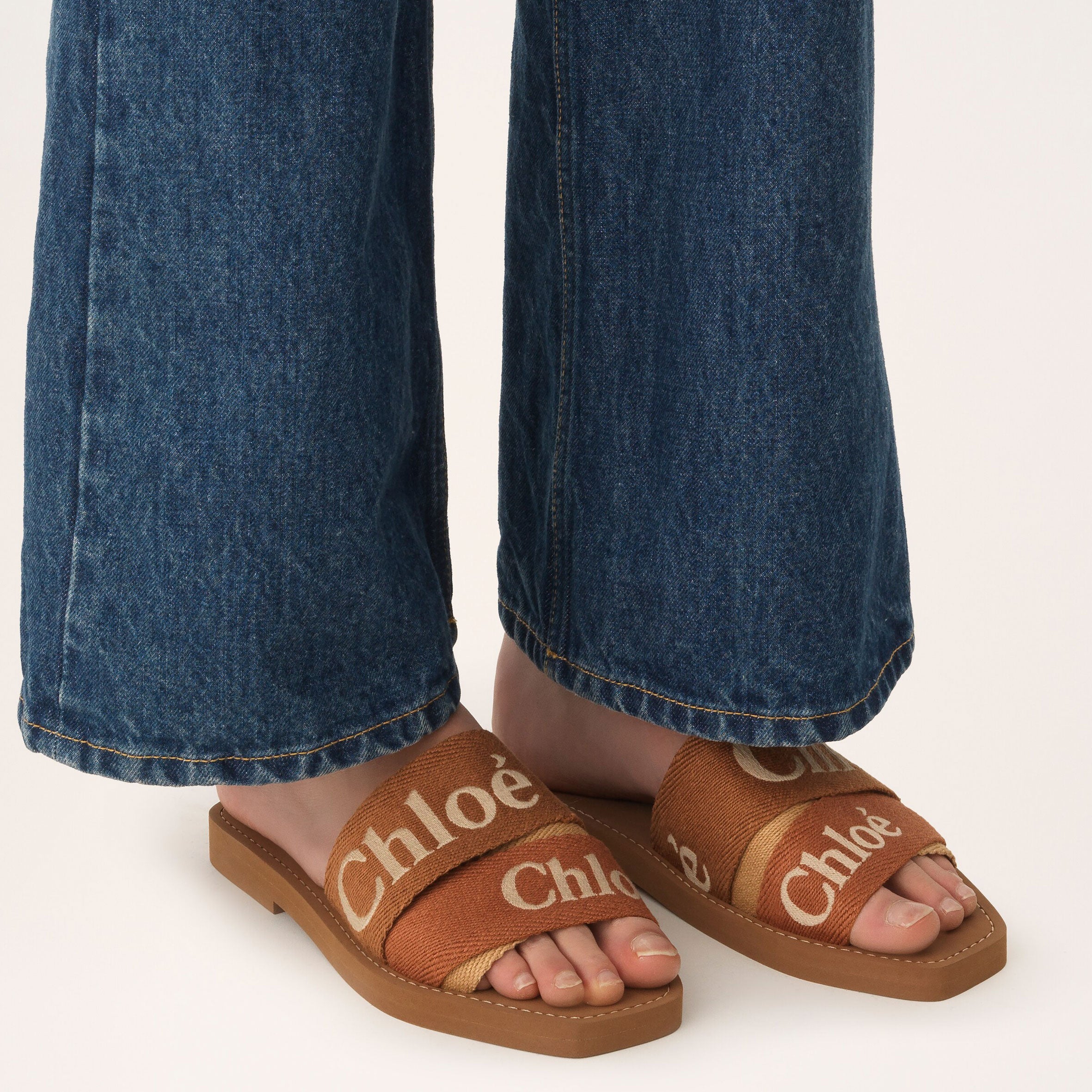 These Woody mules are crafted from different-sized ribbons in lower-impact linen, finished with contrast Chloé logo embroidery.