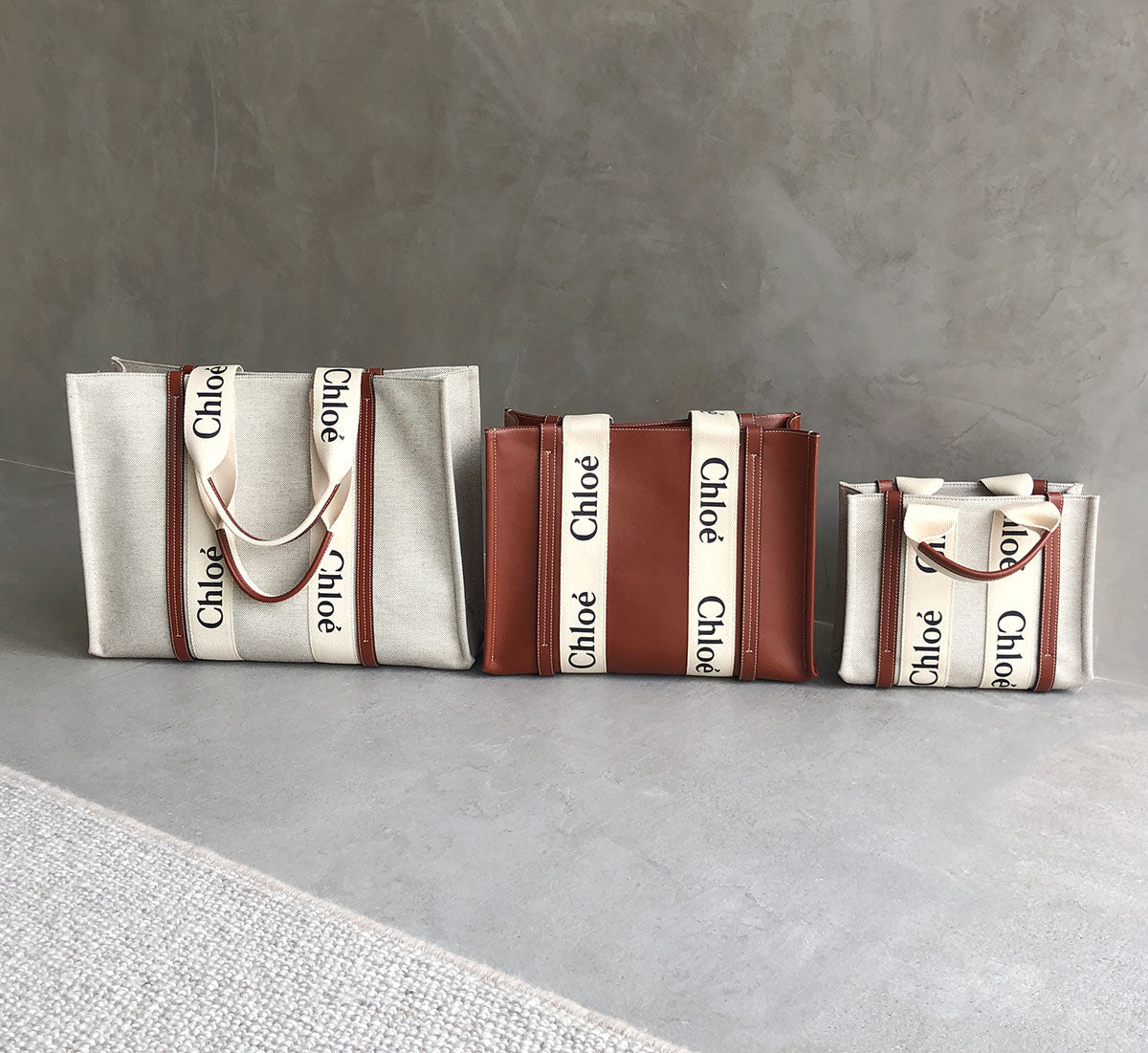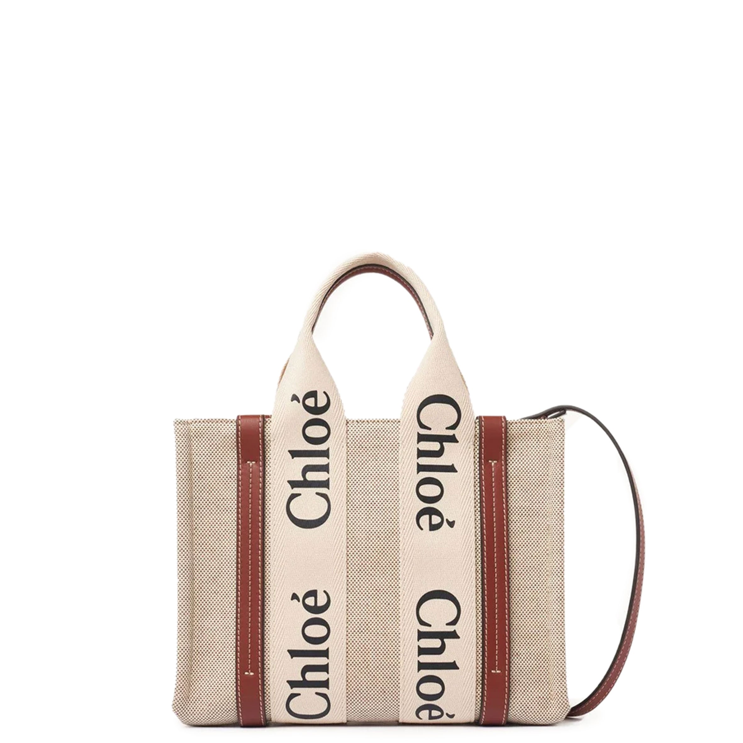 The bag's sharp, modern lines are emphasized by the contrasting vertical leather strips and the signature Chloé logo ribbon carried over from the Maison's Woody mule. Carry this tote bag comfortably on the shoulder