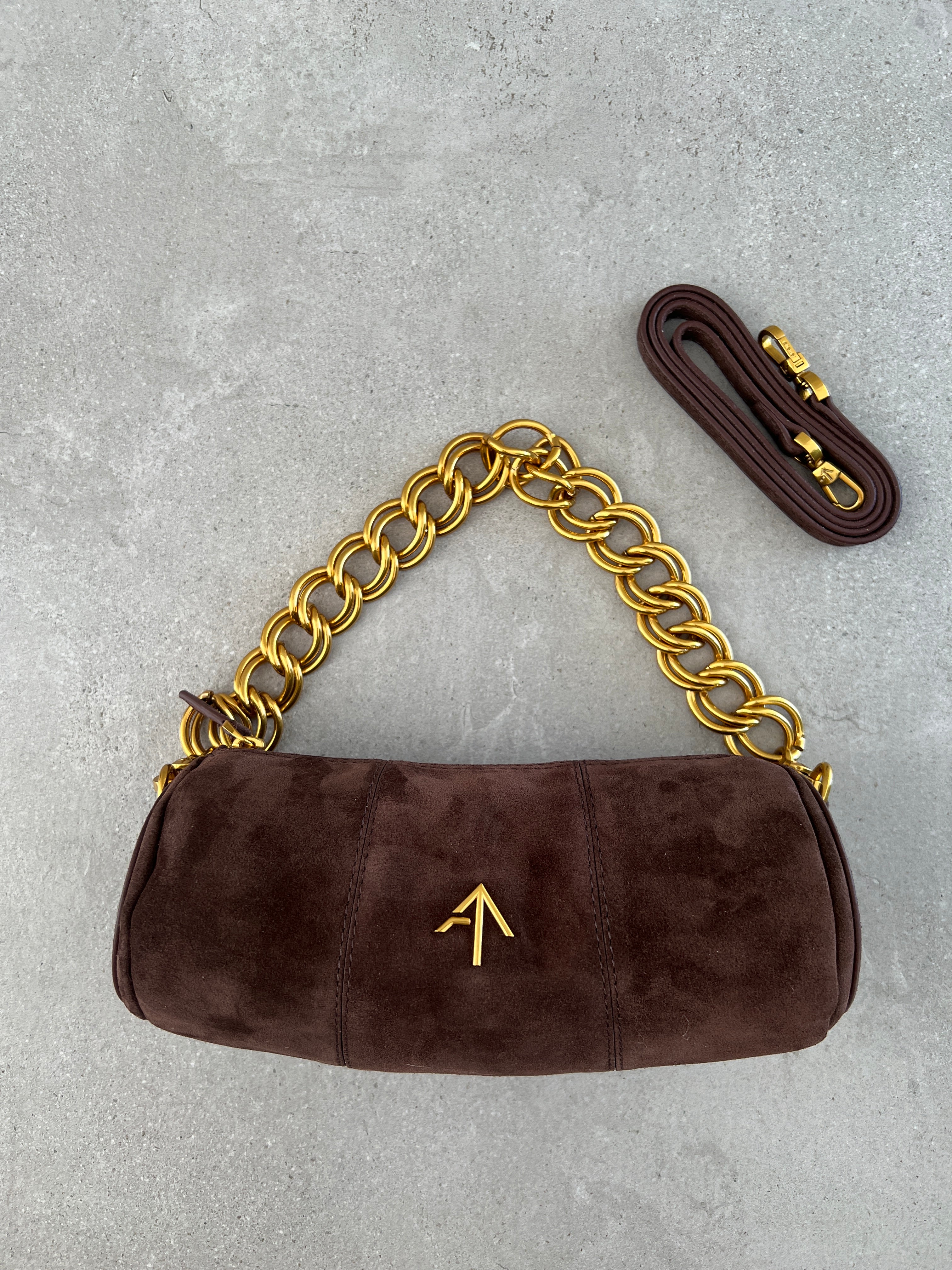 Upgraded with a chunky chain, the XX Mini Cylinder is crafted from supple leather into a three-dimensional circular shape like Cylinder. It has a short chain handle and a long leather strap. You can carry it as a shoulder bag, cross body or grasp it as a handbag depends on your mood. The twill-lined interior is sized to fit your wallet, keys and iPhone comfortably. The new chunky chain will make your day to night look more special while it fits perfectly under your arm.