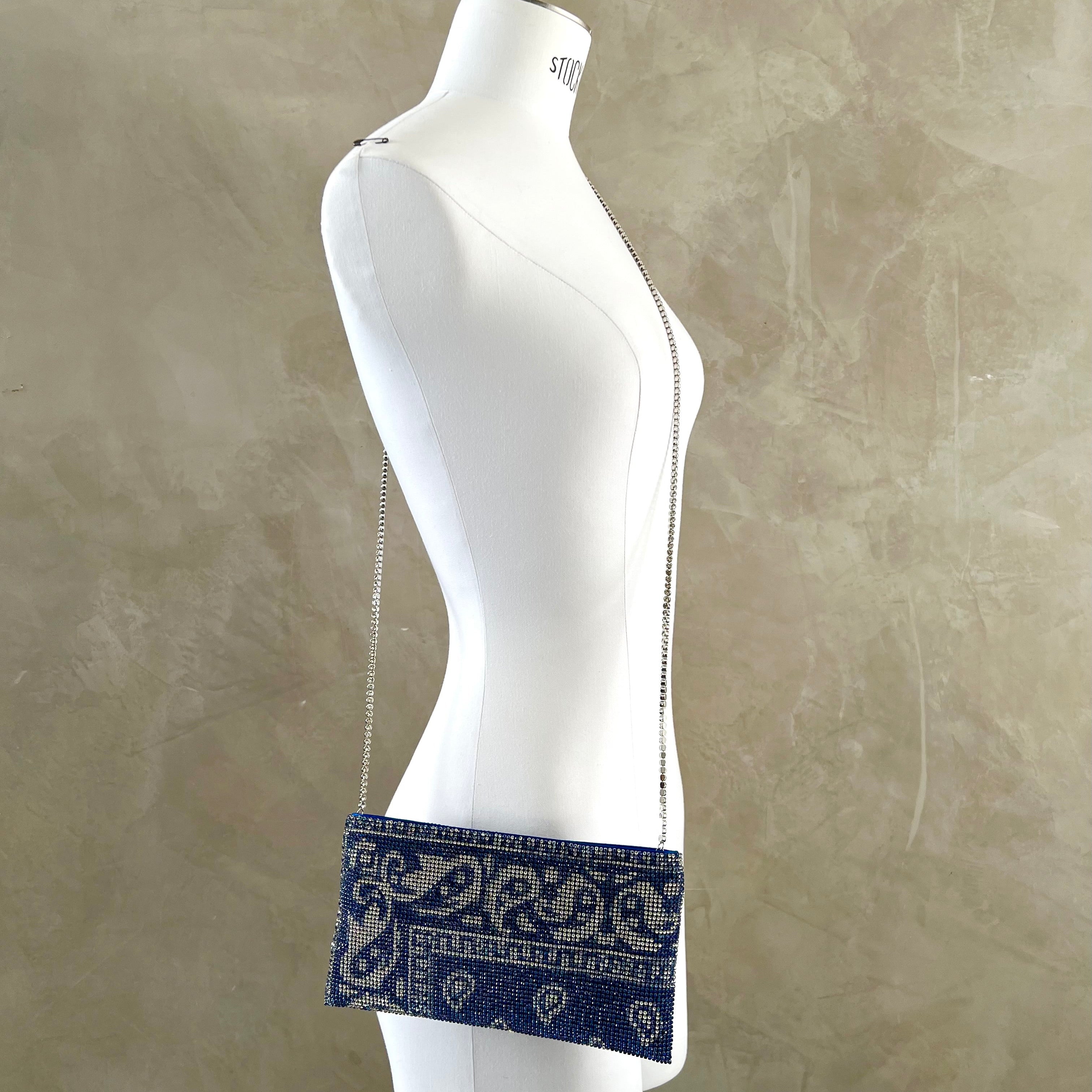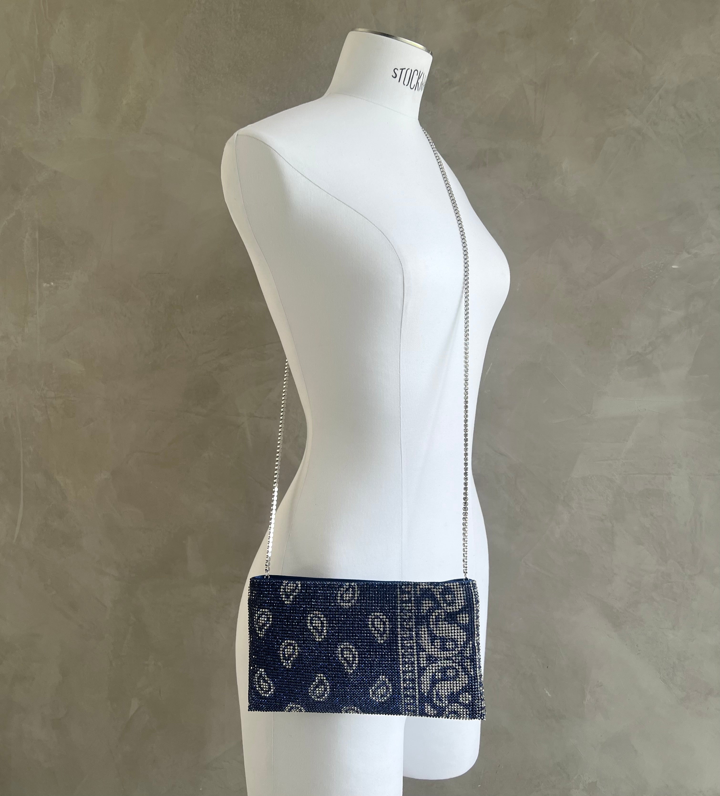 Finished with an elegant crystal strap to wear over the shoulder, this season’s edition is updated in the on-trend bandana print—a must-have motif that elevates every look with modern attitude.