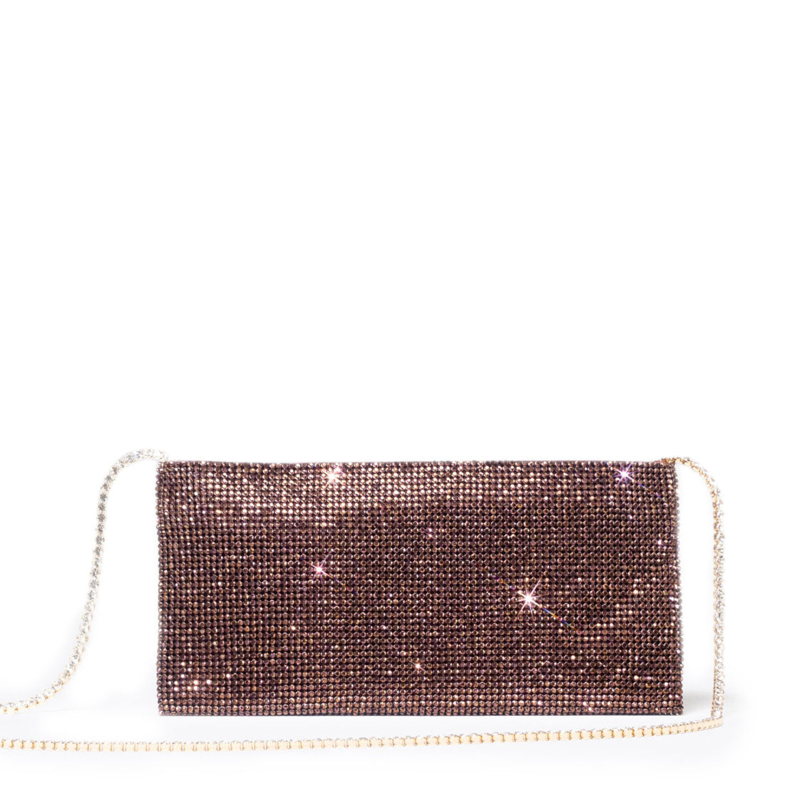 Designed to keep only what is really important, this bag is a mini clutch made with a soft net of crystals lined with denim, entirely hand-sewn. An elegant crystal shoulder strap allows you to wear it on the shoulder.