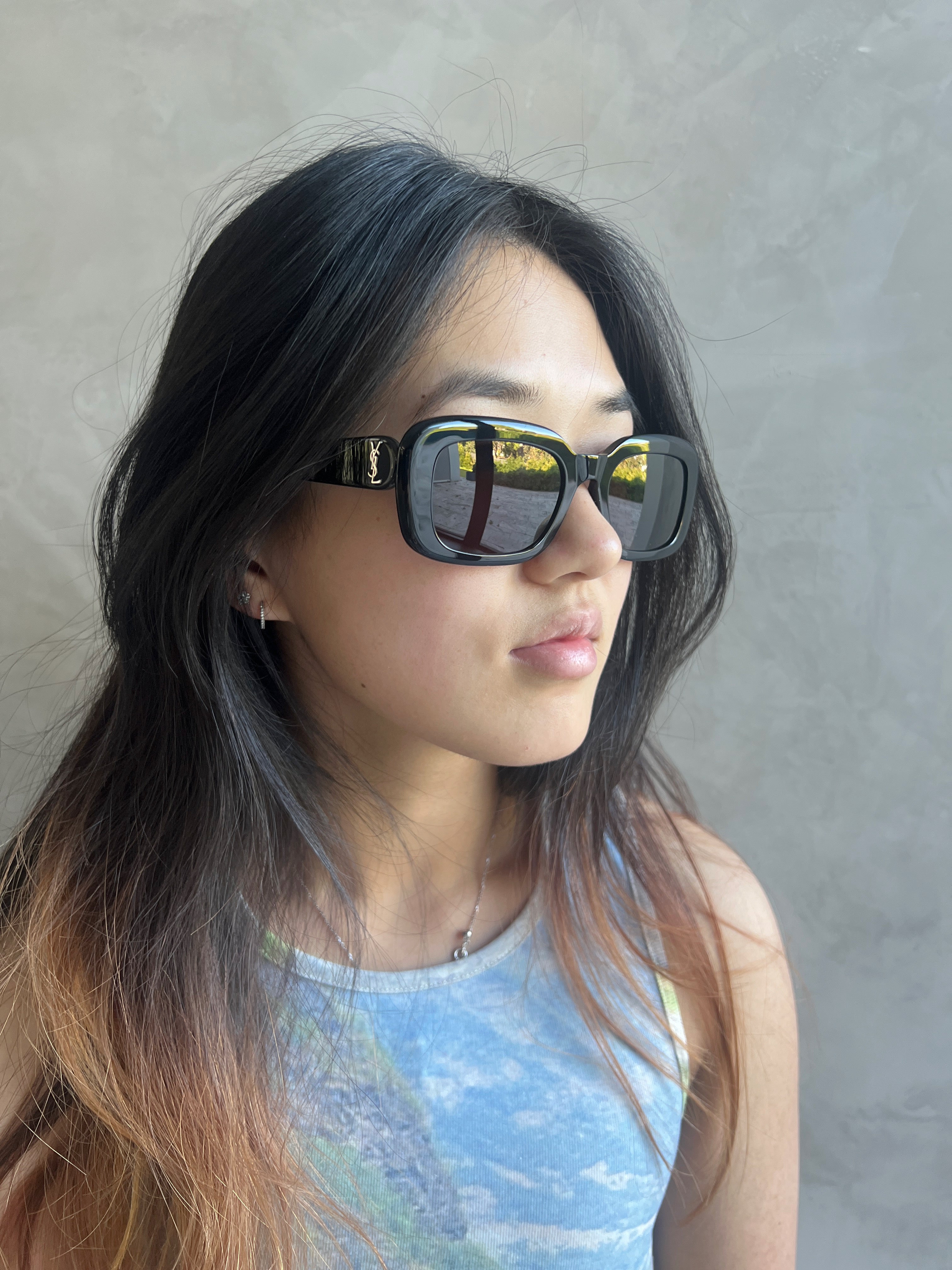 YSL SLM130 Pillowed Rectangular Sunglasses, Black (S)