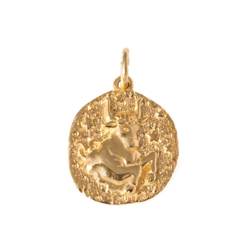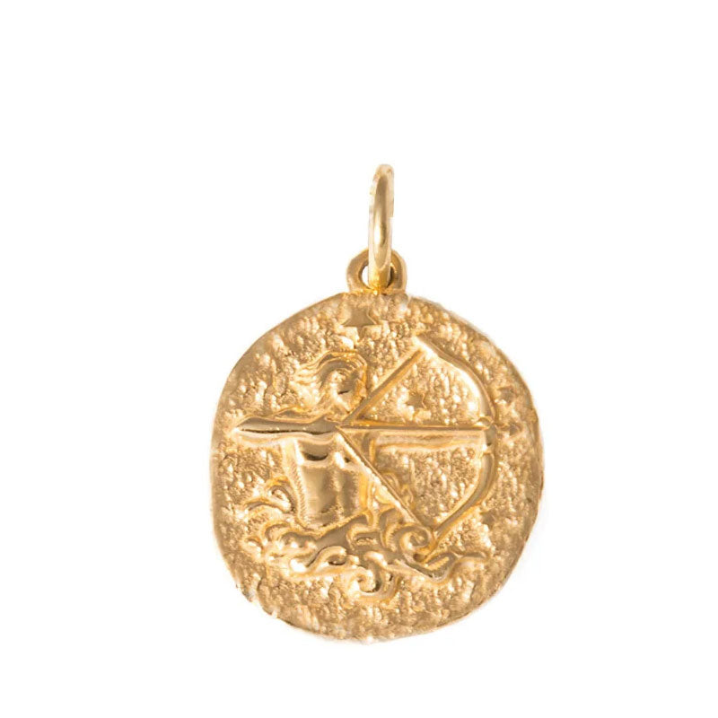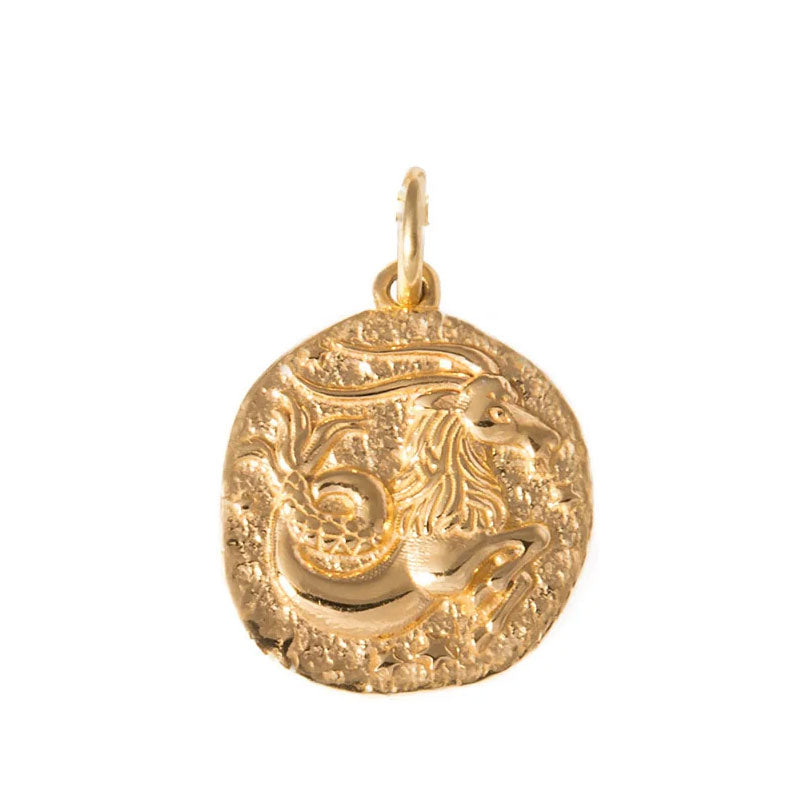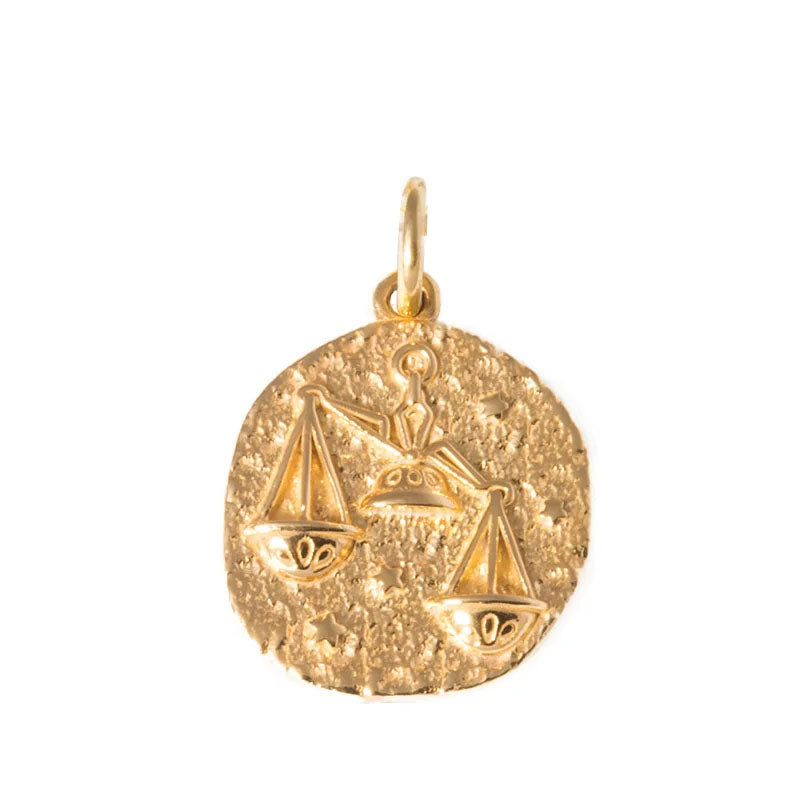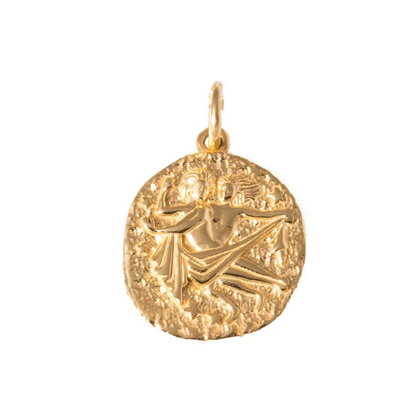 Handcrafted 24ct gold plated pendant featuring a hand-drawn zodiac design. The name of the sign is embossed on the back making it ideal to wear from both sides.