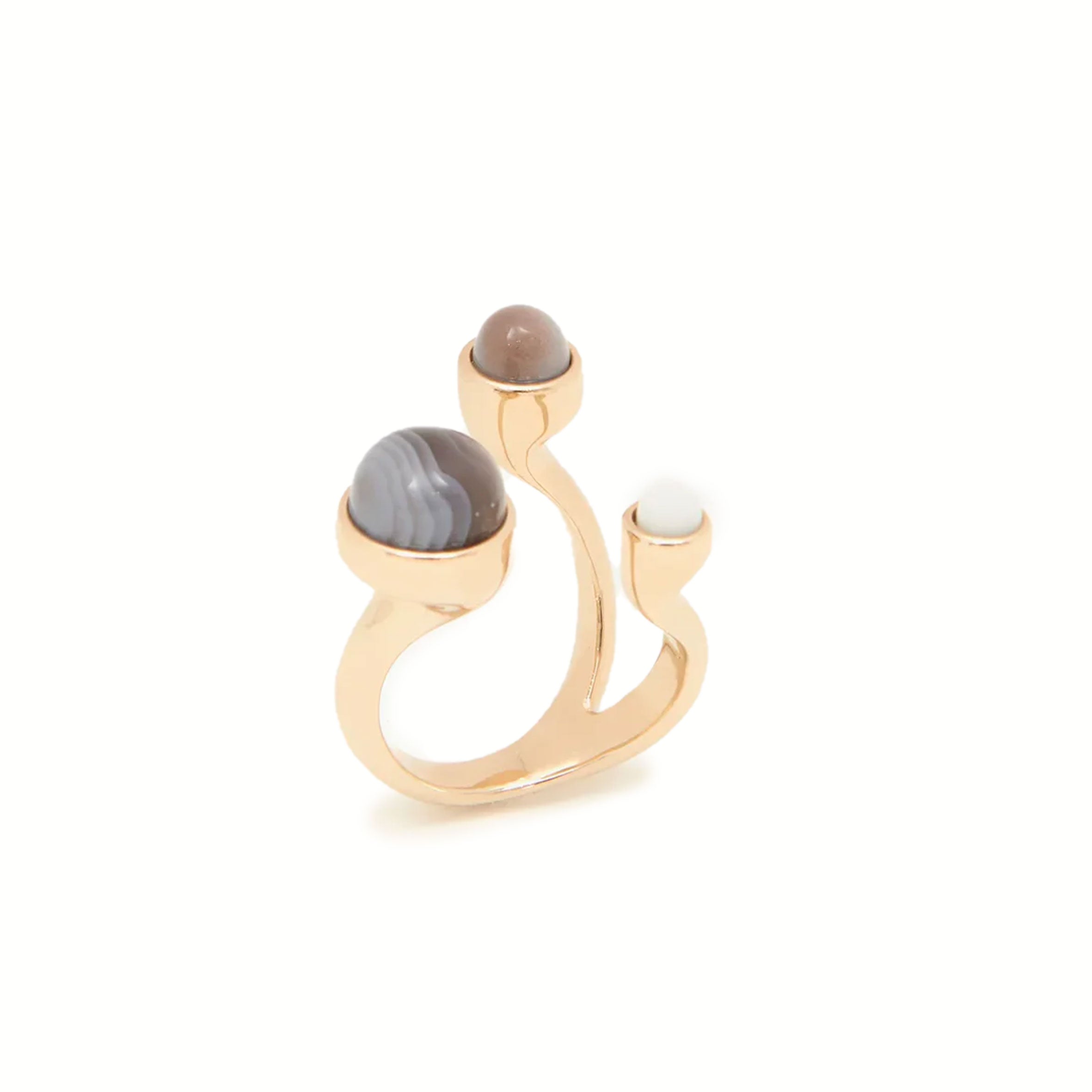 Chloé Zodiac Cancer ring in brass, white stone & agate